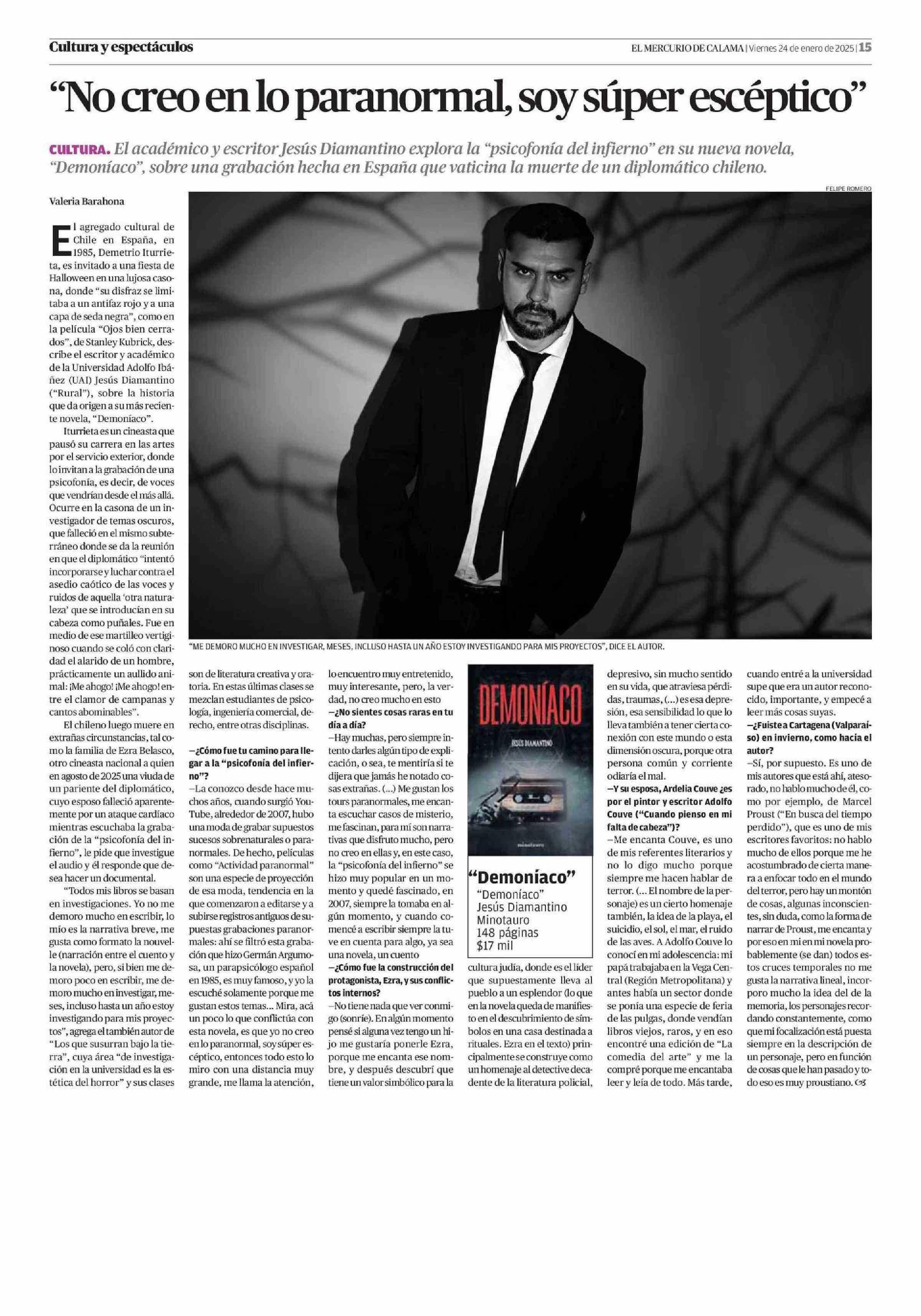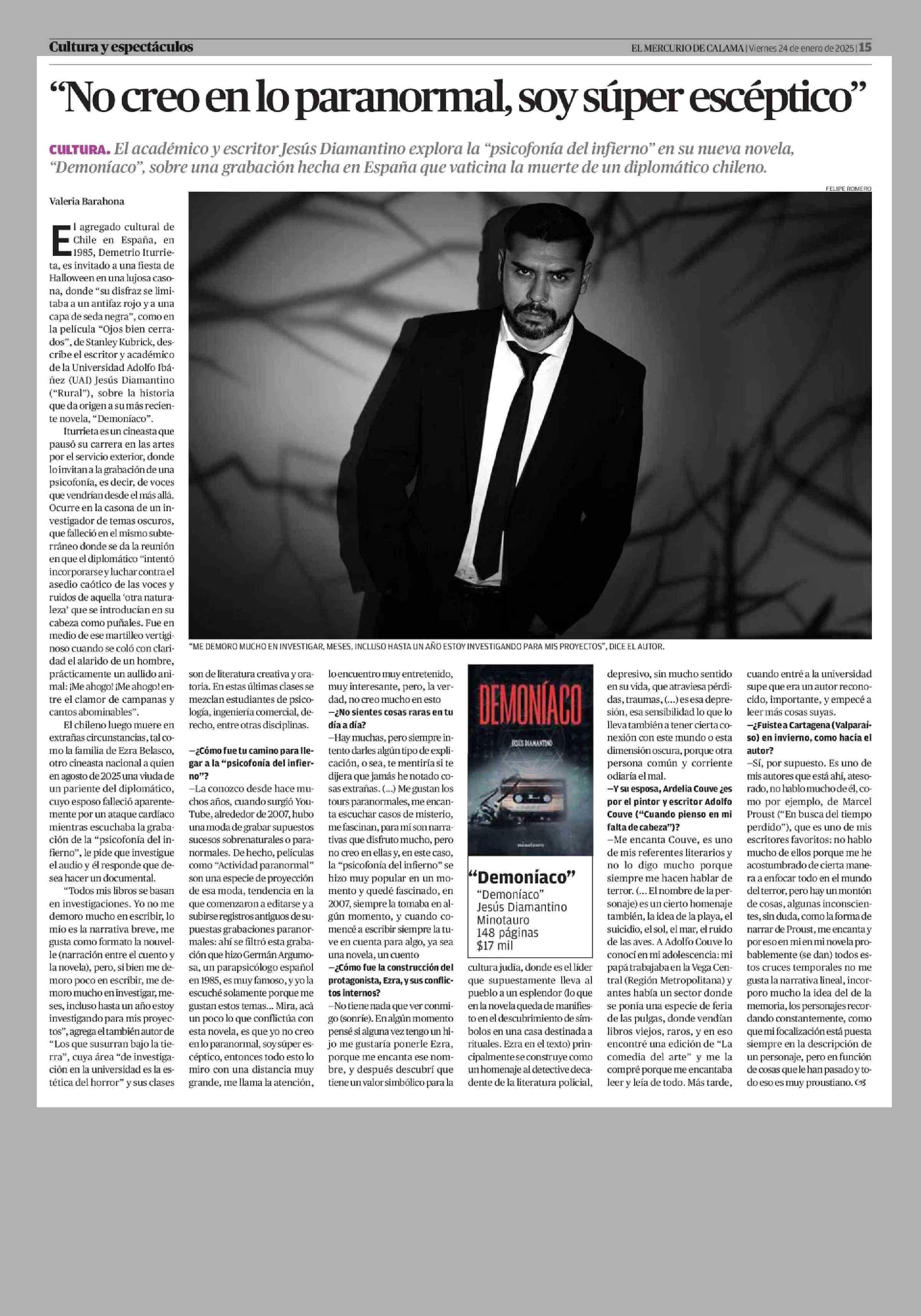 “No creo en lo paranormal, soy súper escéptico” 24-01-2025 El Mercurio de Calama |
