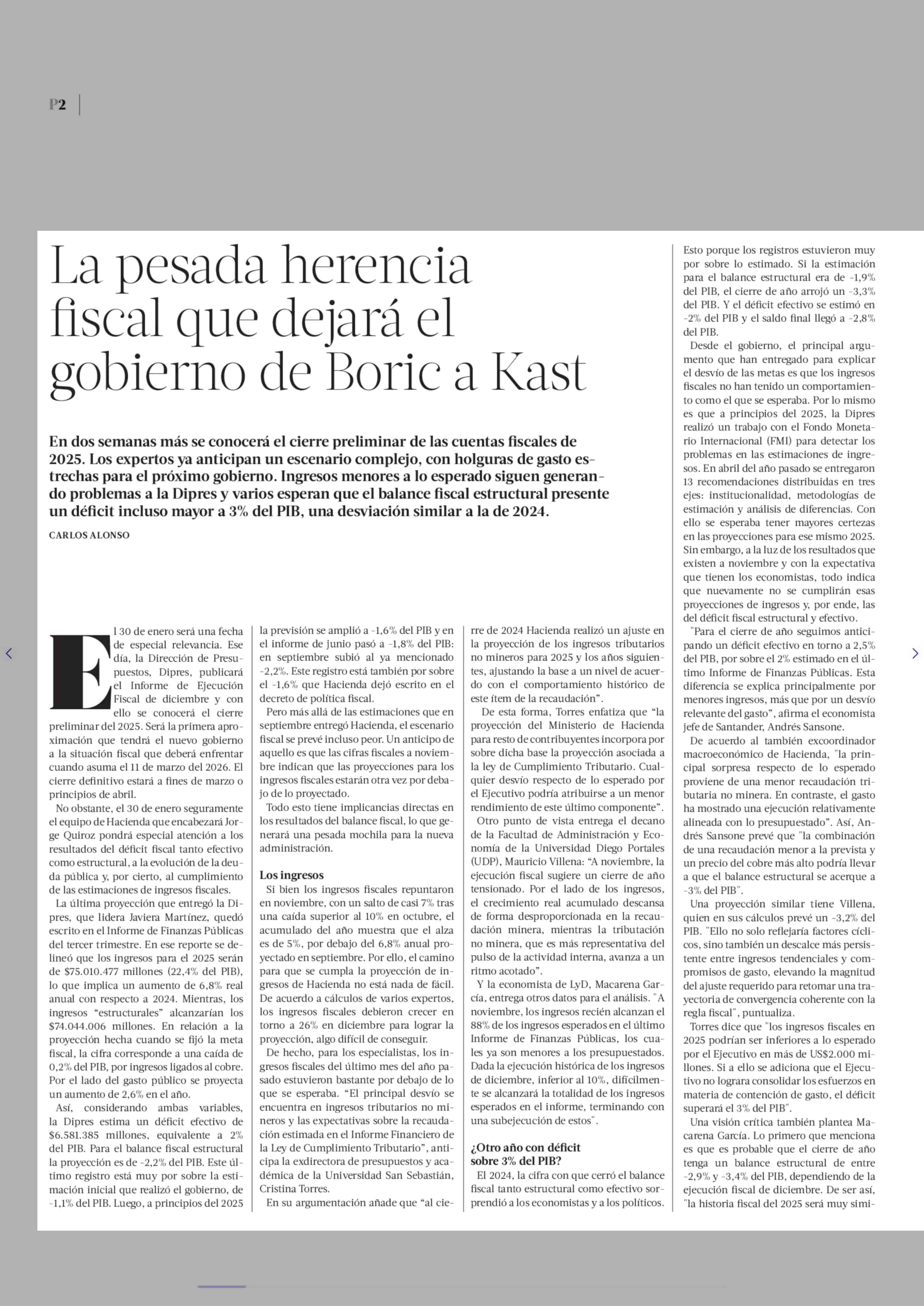 Título: La pesada herencia fiscal que dejará el gobierno de Boric a Kast