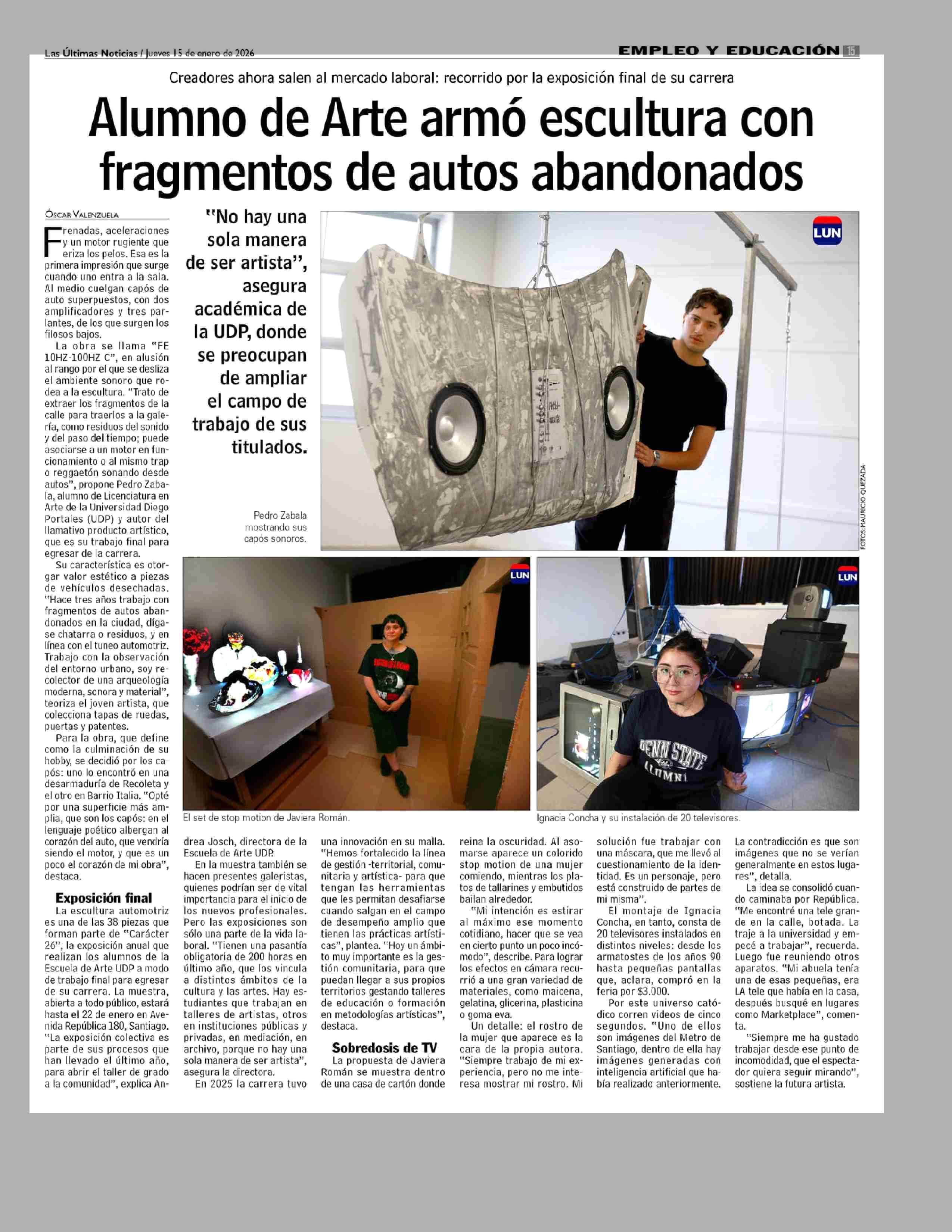 Título: Alumno de Arte armo escultura con fragmentos de autos abandonados