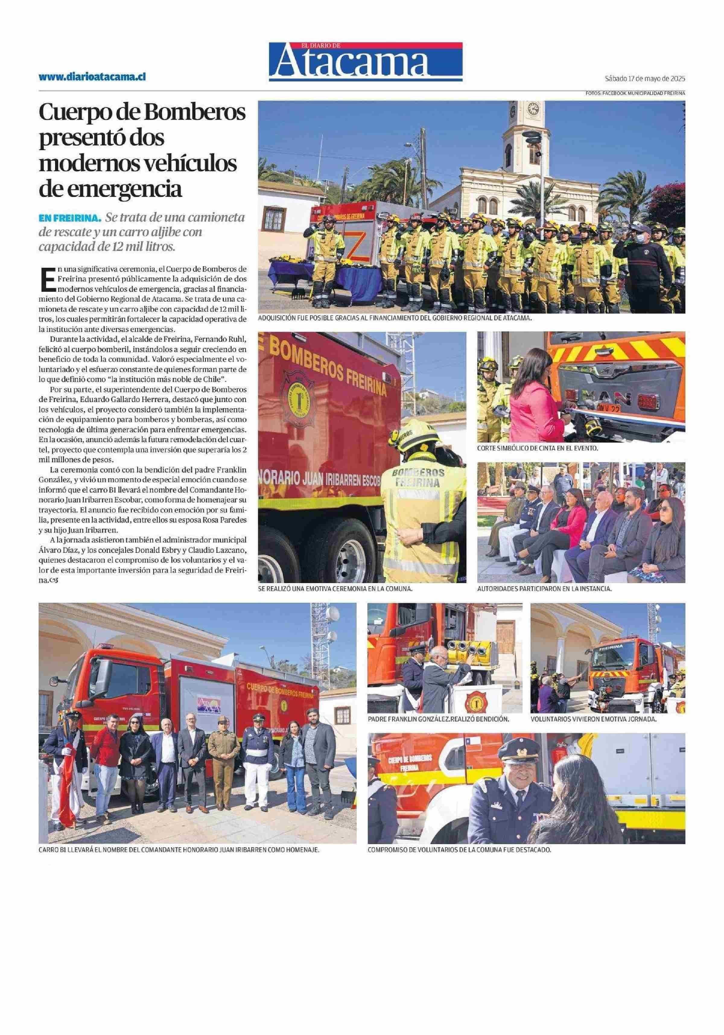 Cuerpo de Bomberos presentó dos modernos vehículos de emergencia 17-05-2025 El Diario de Atacama |