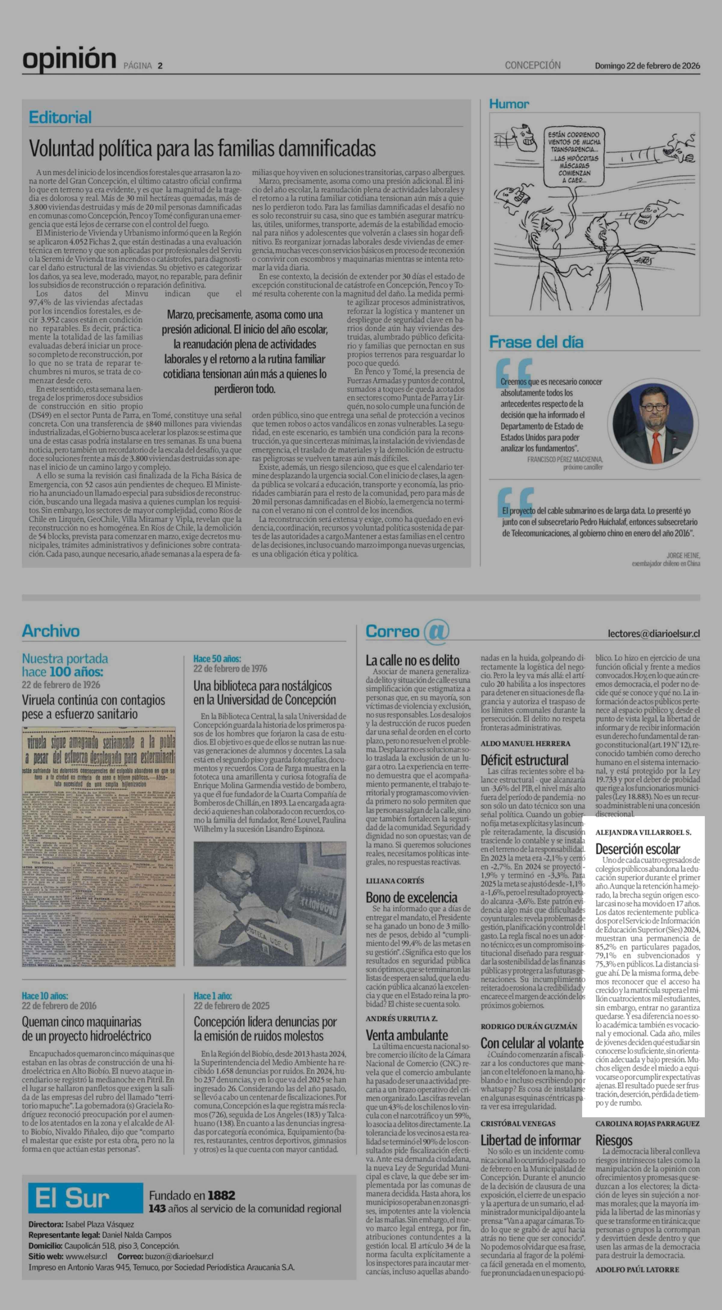Fecha: 22-02-2026 Sector: Noticia general Región: Región del Bío-Bío