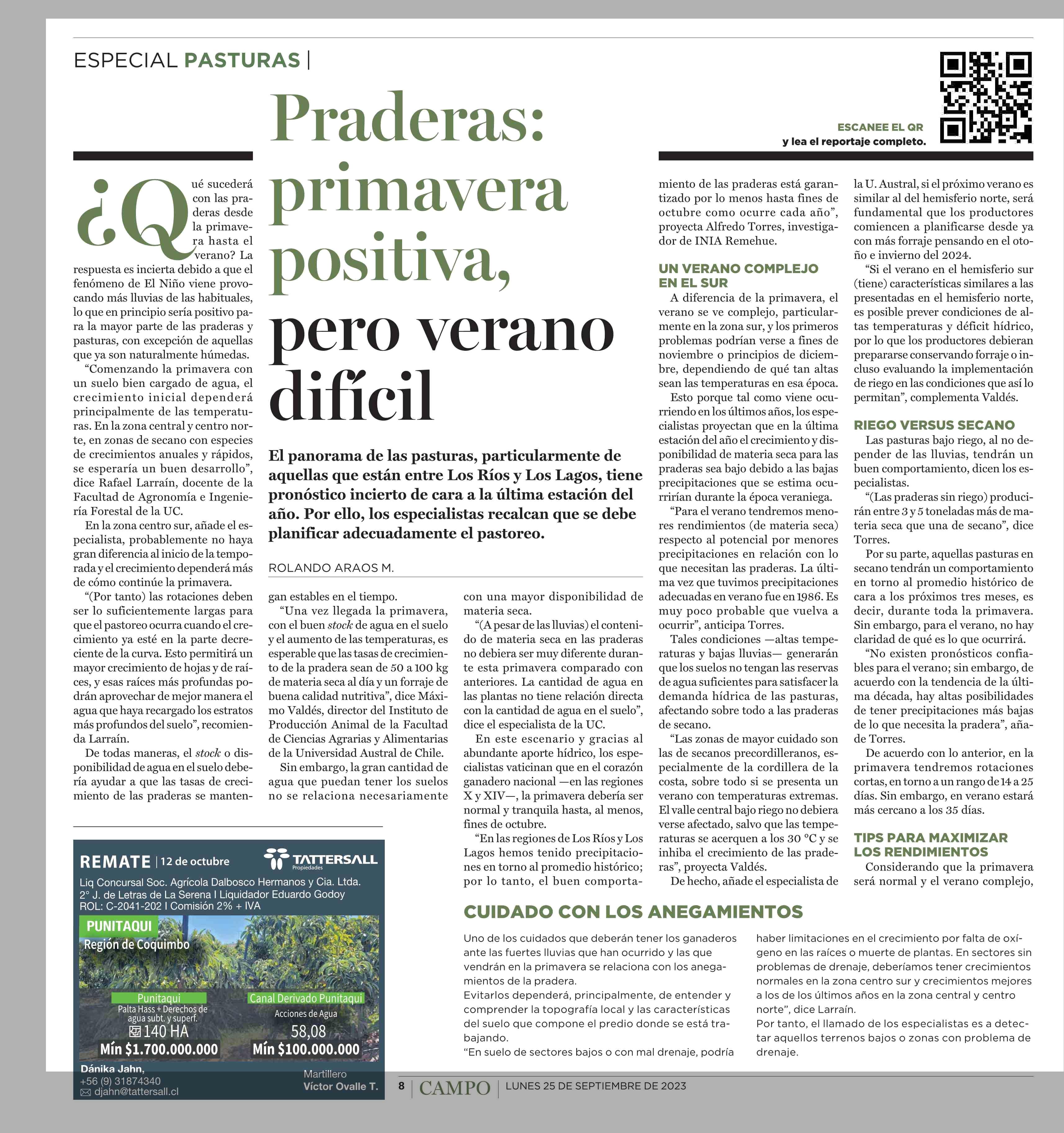 Praderas: primavera positiva, pero verano difícil 25-09-2023 El Mercurio |