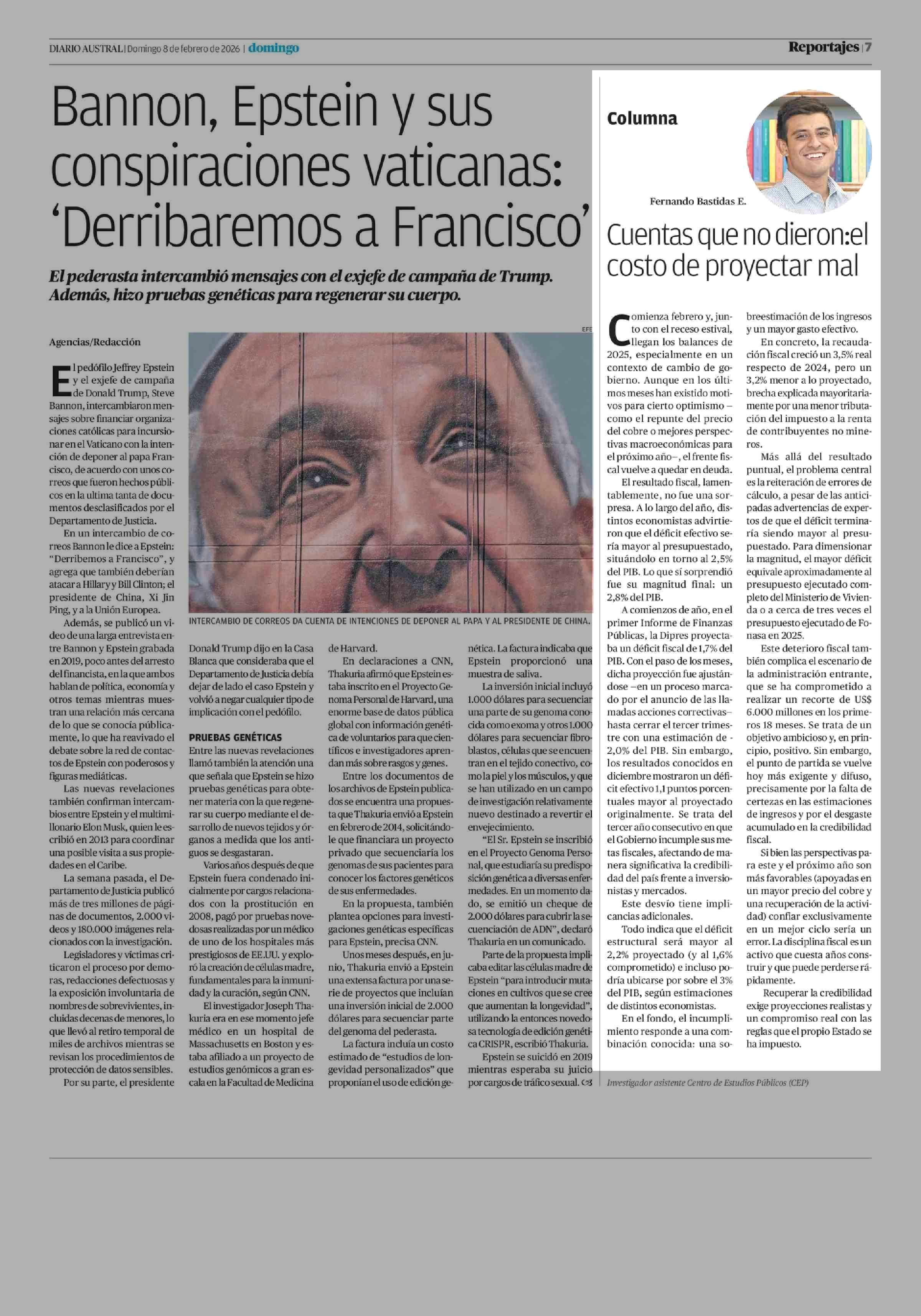Columnas de Opinión: Cuentas que no dieron:el costo de proyectar mal 08-02-2026 Diario Austral Región de Los Ríos |