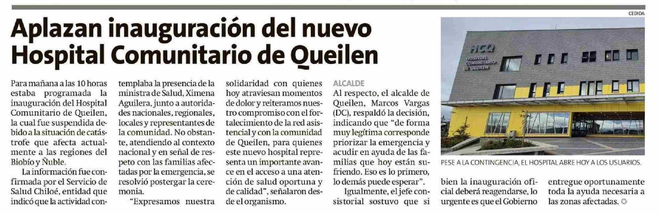 Título: Aplazan inauguración del nuevo Hospital Comunitario de Queilen