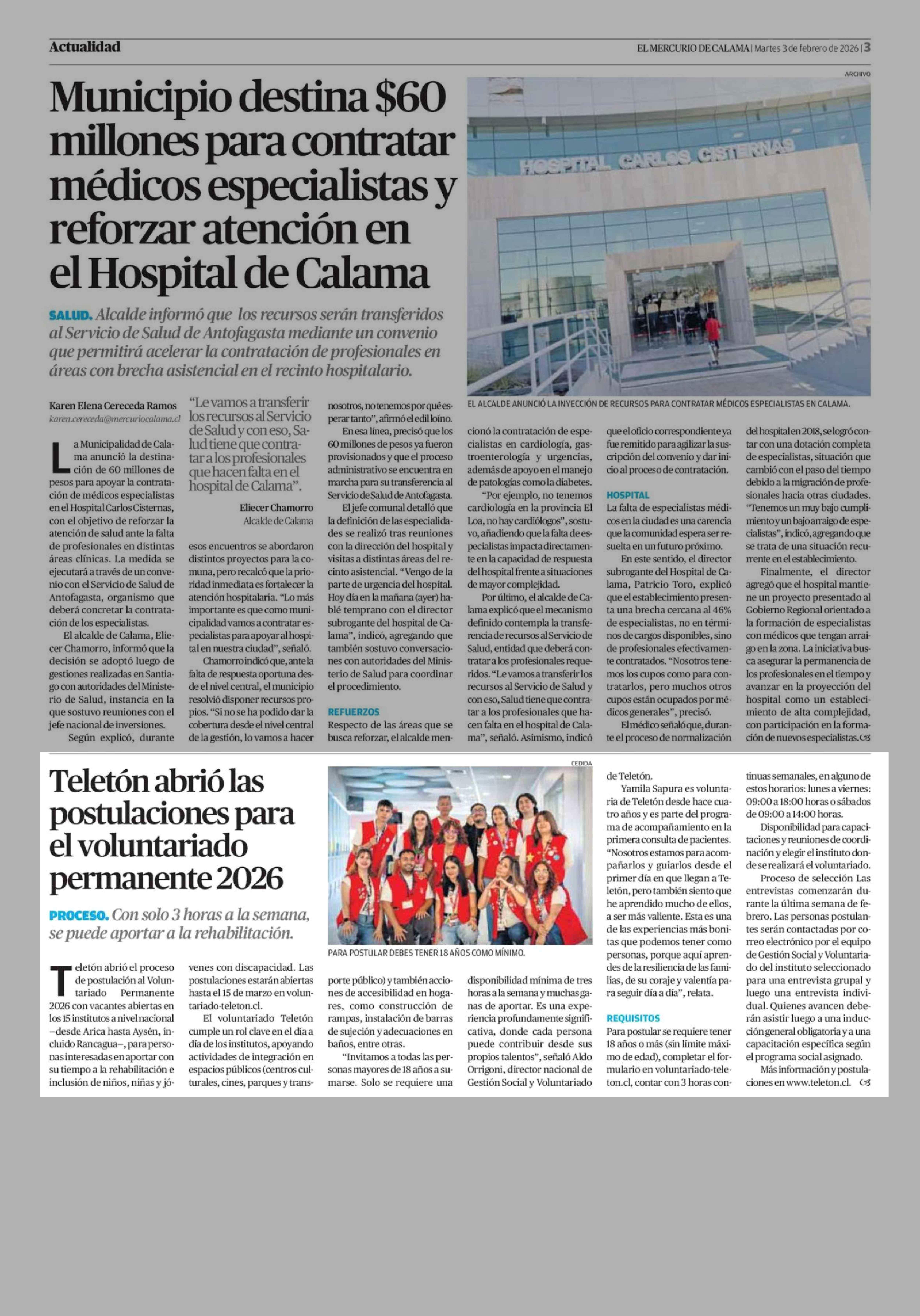 Teletón abrió las postulaciones para el voluntariado permanente 2026 03-02-2026 El Mercurio de Calama |