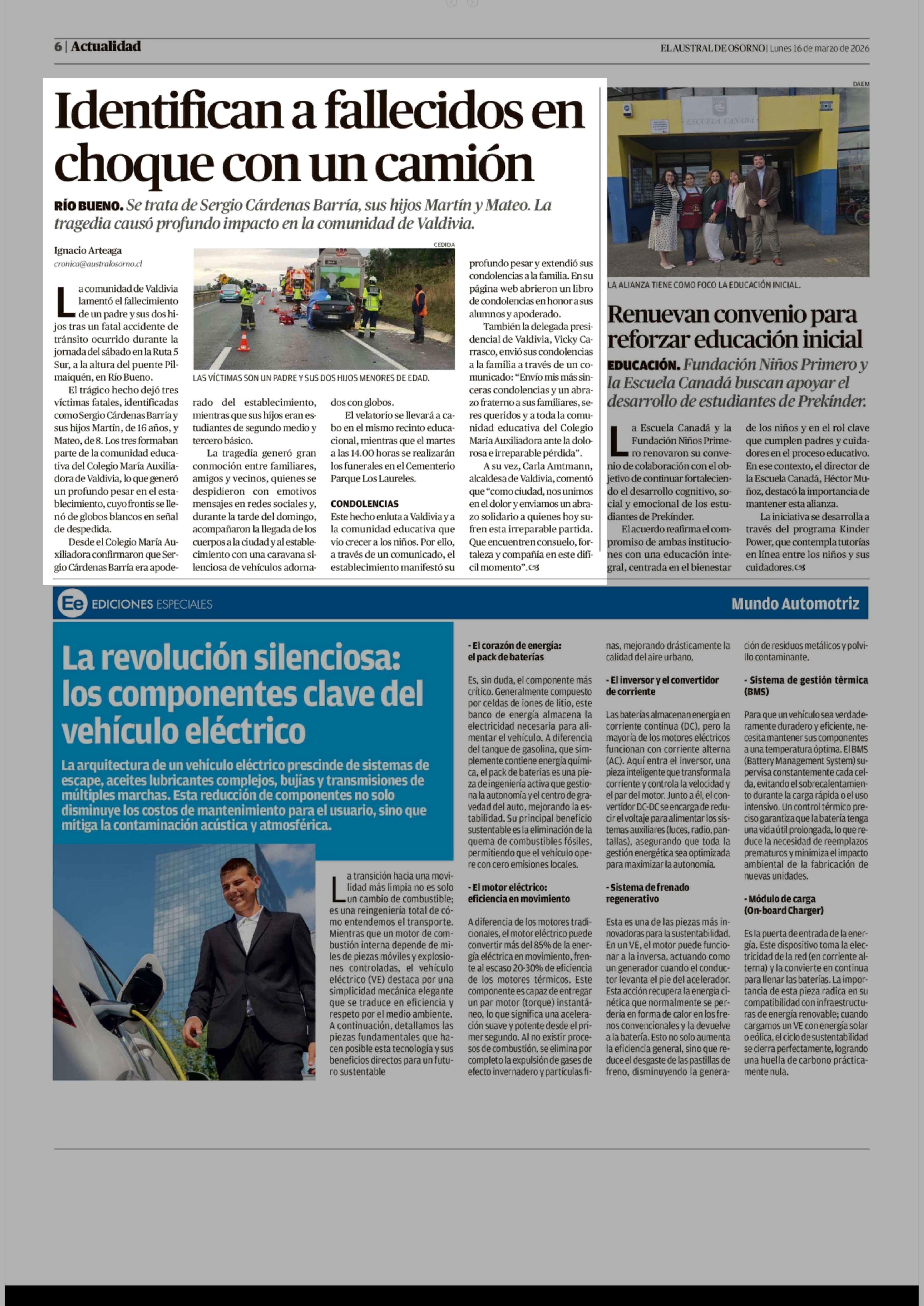 Identifican a fallecidos en choque con un camión 16-03-2026 El Austral de Osorno |