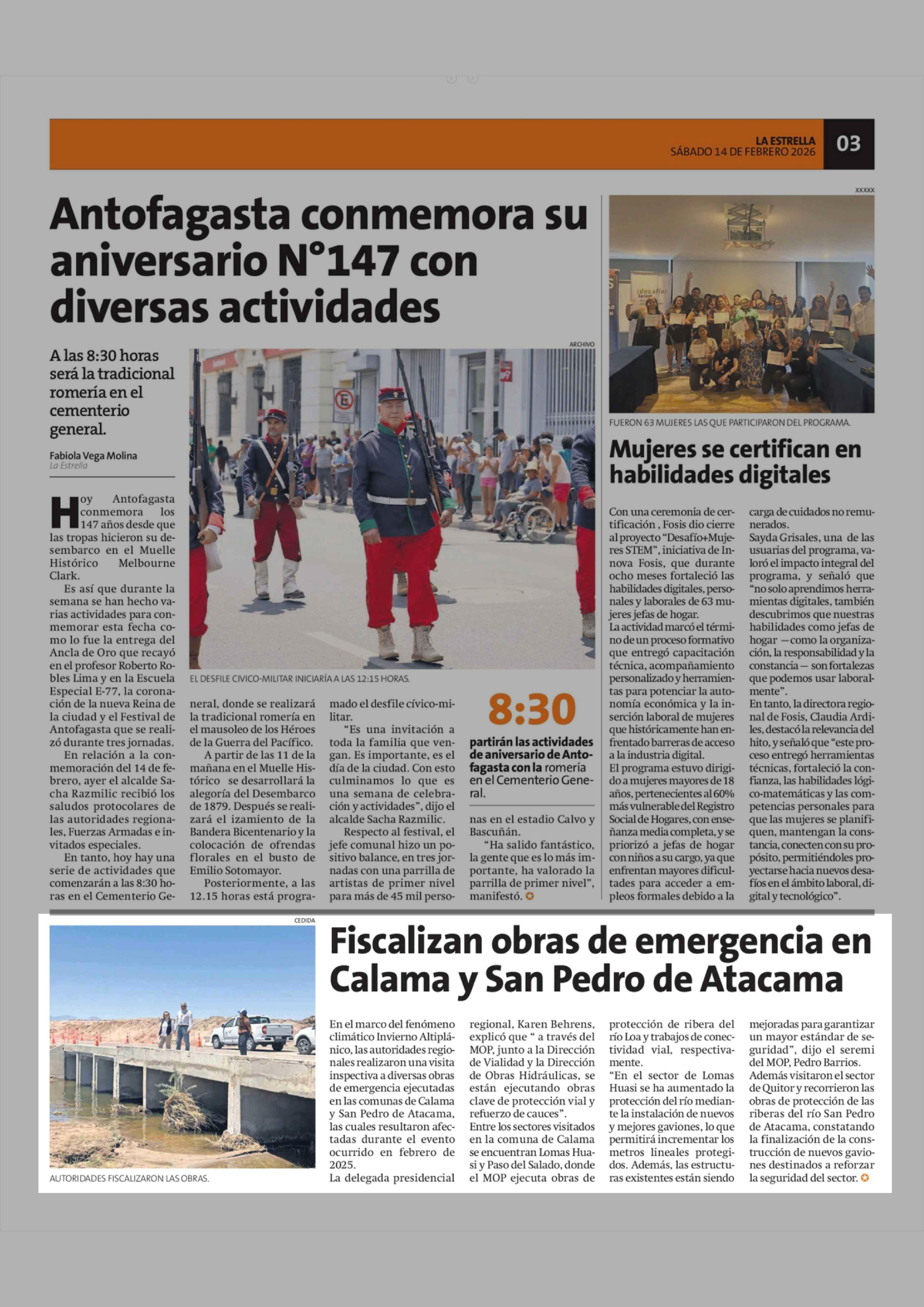 Fiscalizan obras de emergencia en Calama y San Pedro de Atacama 14-02-2026 La Estrella de Antofagasta |