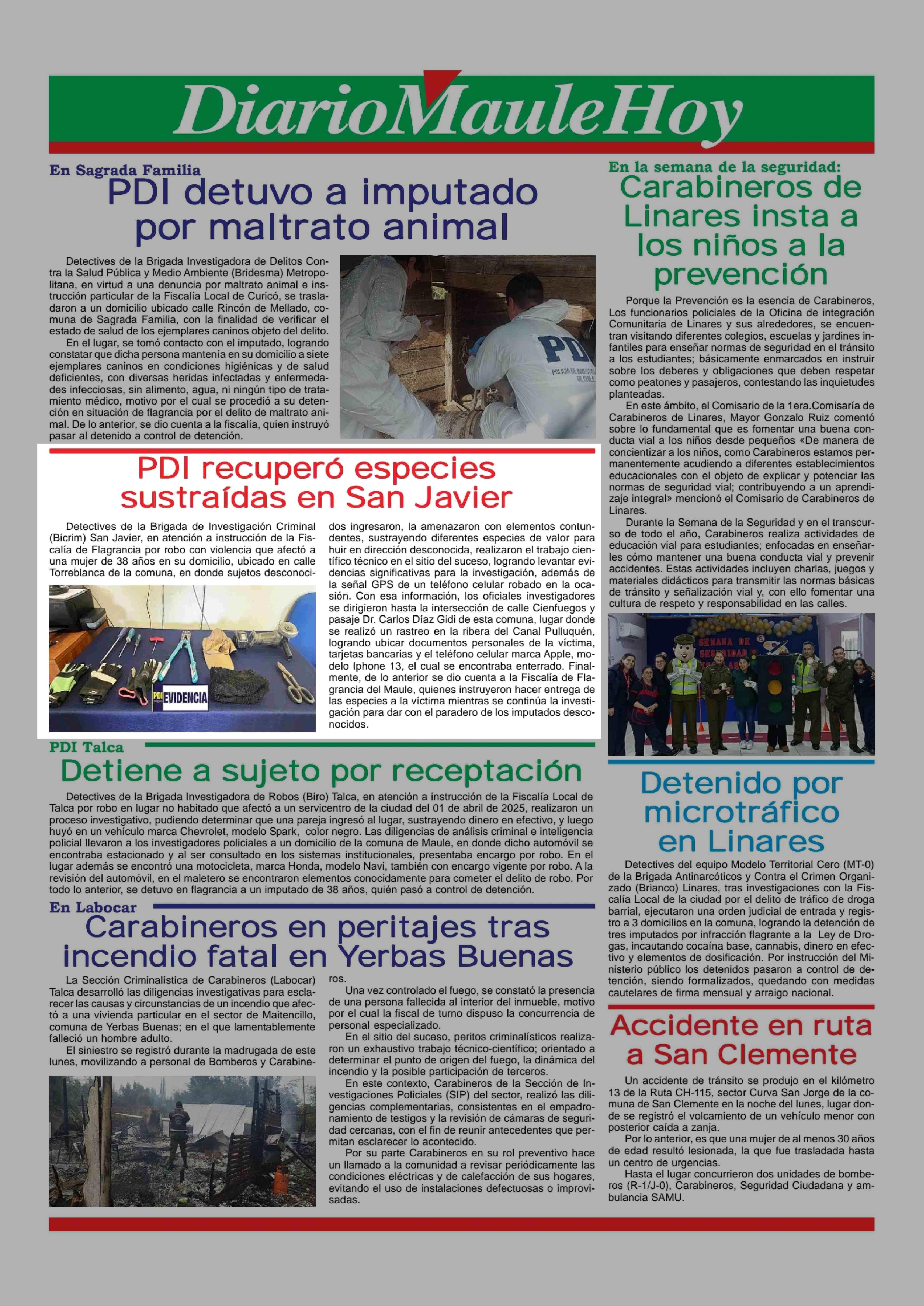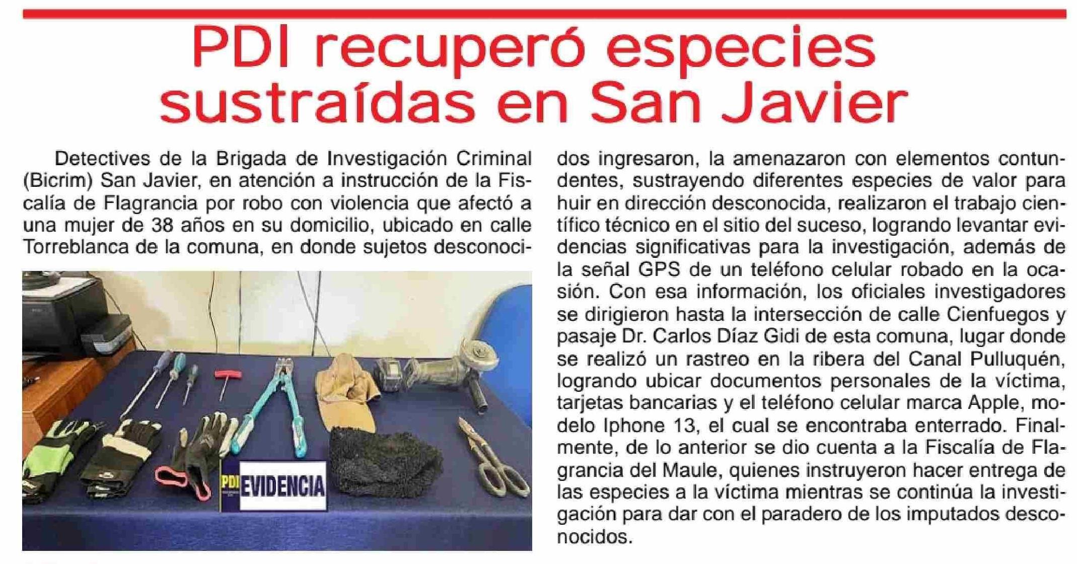 PDI recuperó especies sustraídas en San Javier 28-05-2025 Maule Hoy |