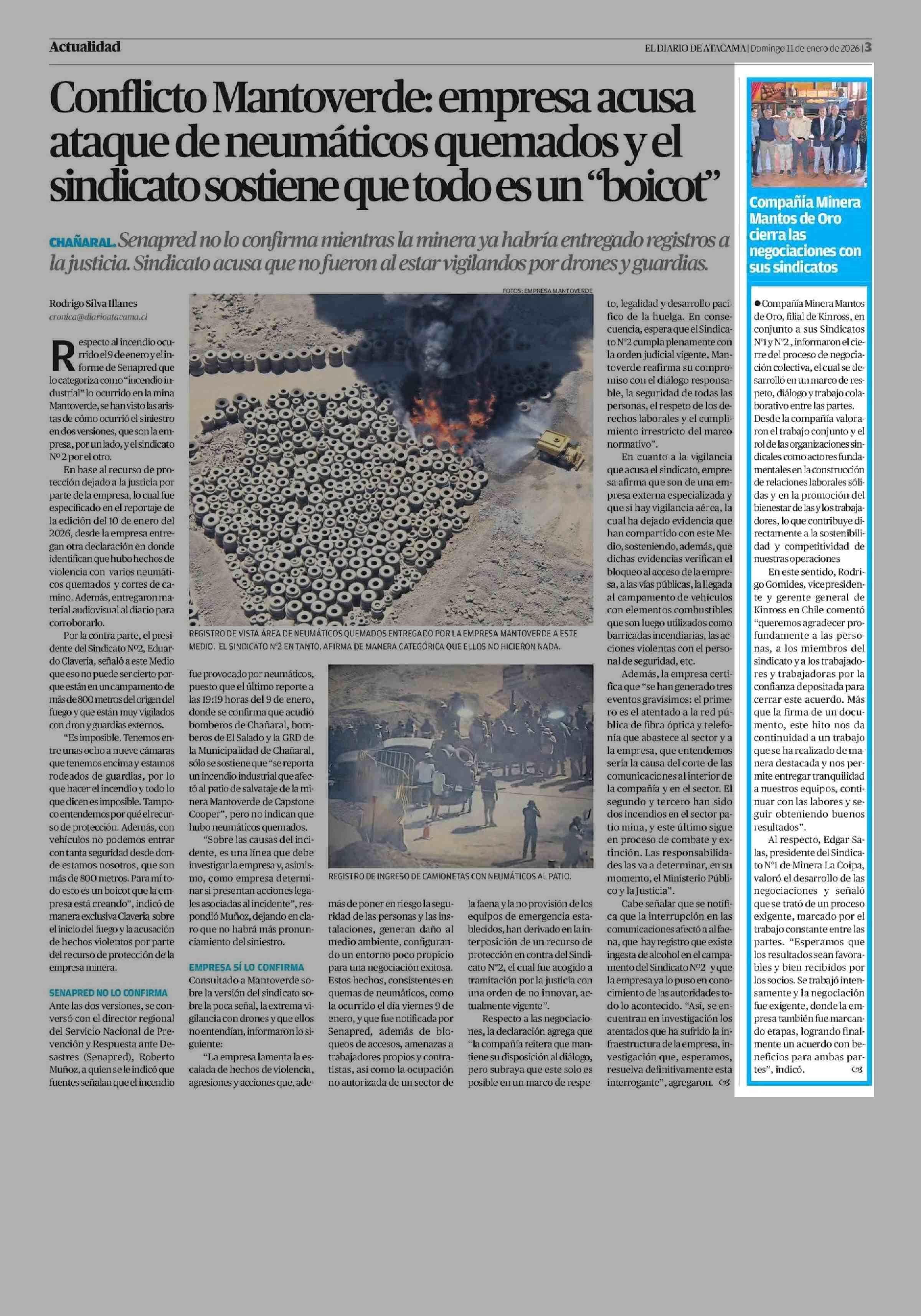 Compañía Minera Mantos de Oro cierra las negociaciones con sus sindicatos 11-01-2026 El Diario de Atacama |
