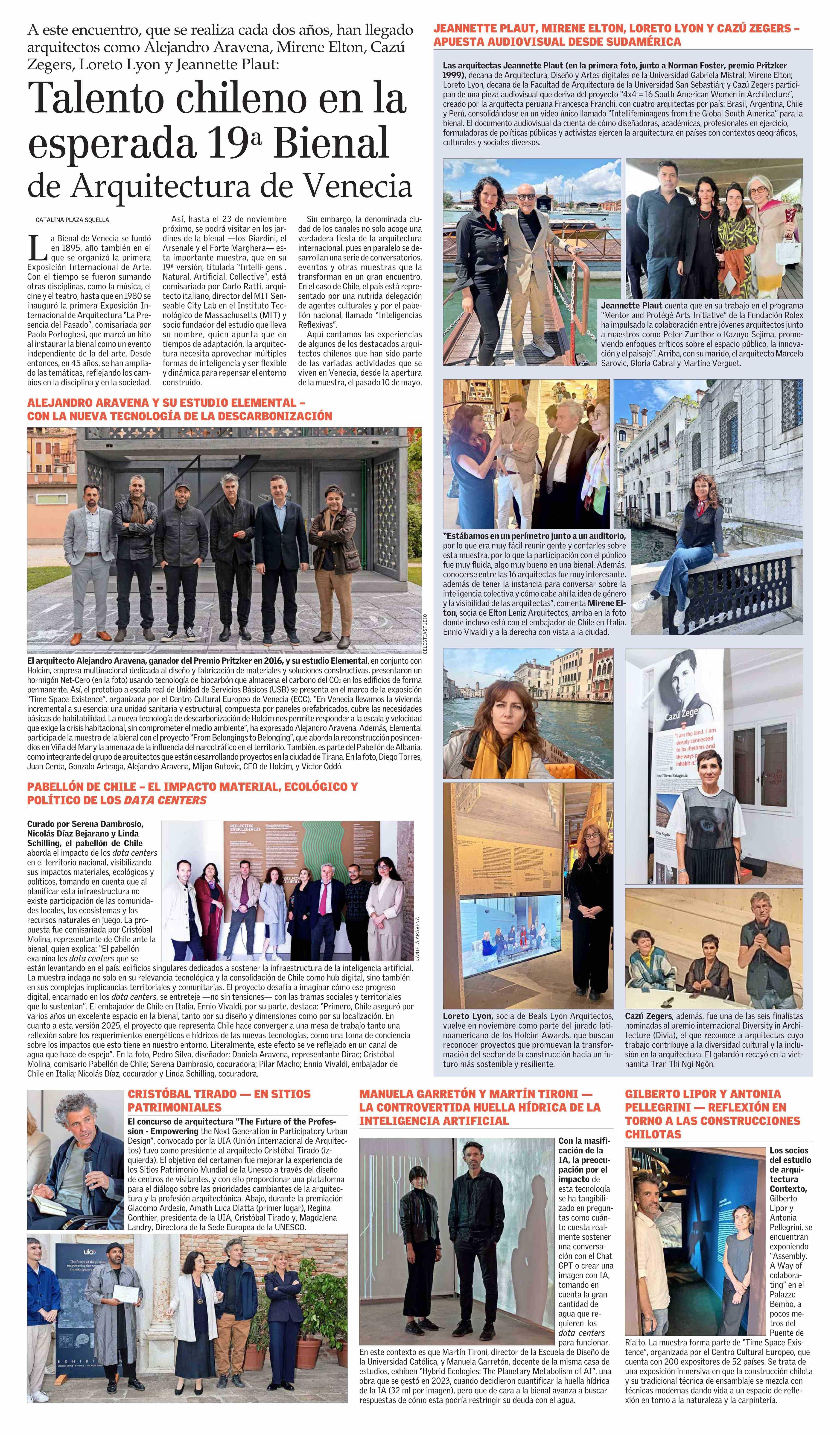 Talento chileno en la esperada 19 Bienal de Arquitectura de Venecia 22-06-2025 El Mercurio |