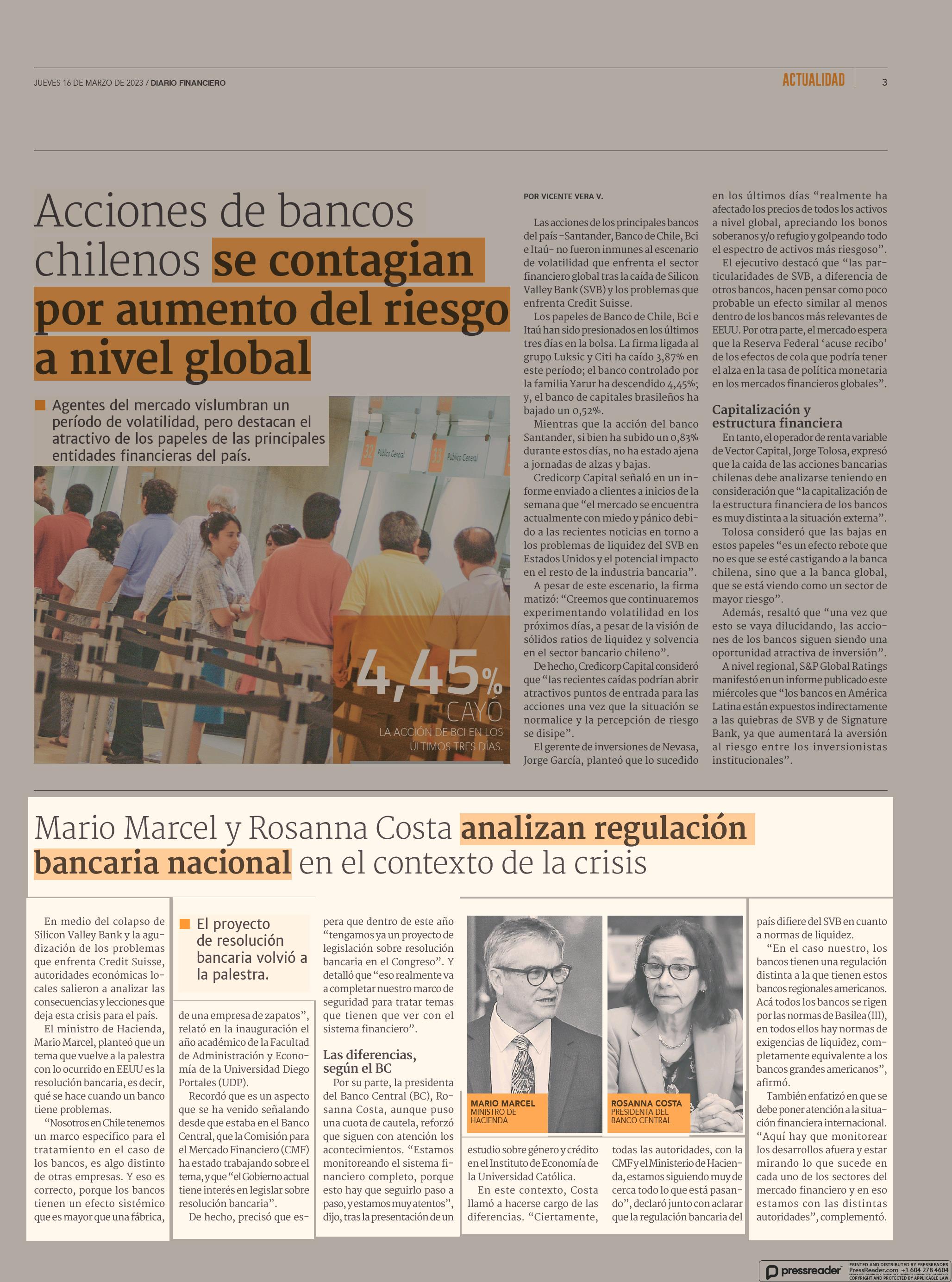 Mario Marcel y Rosanna Costa analizan regulación bancaria nacional en el contexto de la crisis 16-03-2023 Diario Financiero |