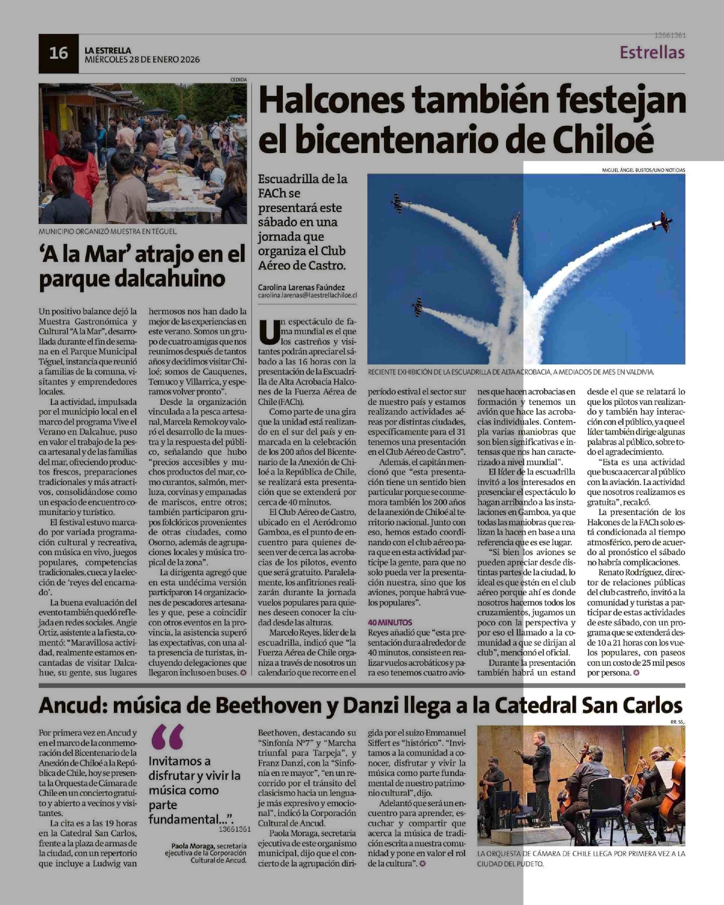 Halcones también festejan el bicentenario de Chiloé 28-01-2026 La Estrella de Chiloé |