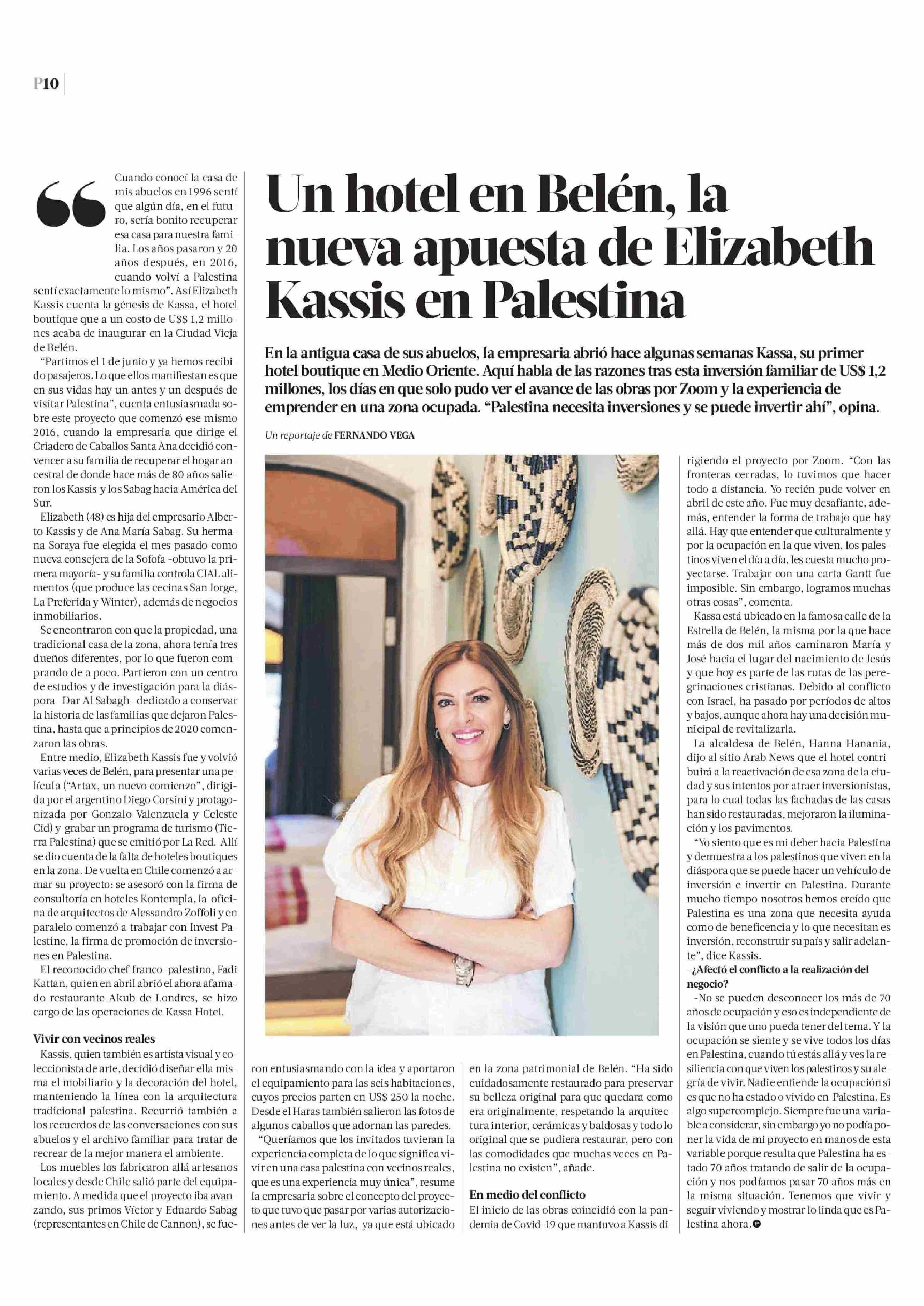 Un hotel en Belén, la nueva apuesta de Elizabeth kassis en Palestina 18-06-2023 La Tercera |