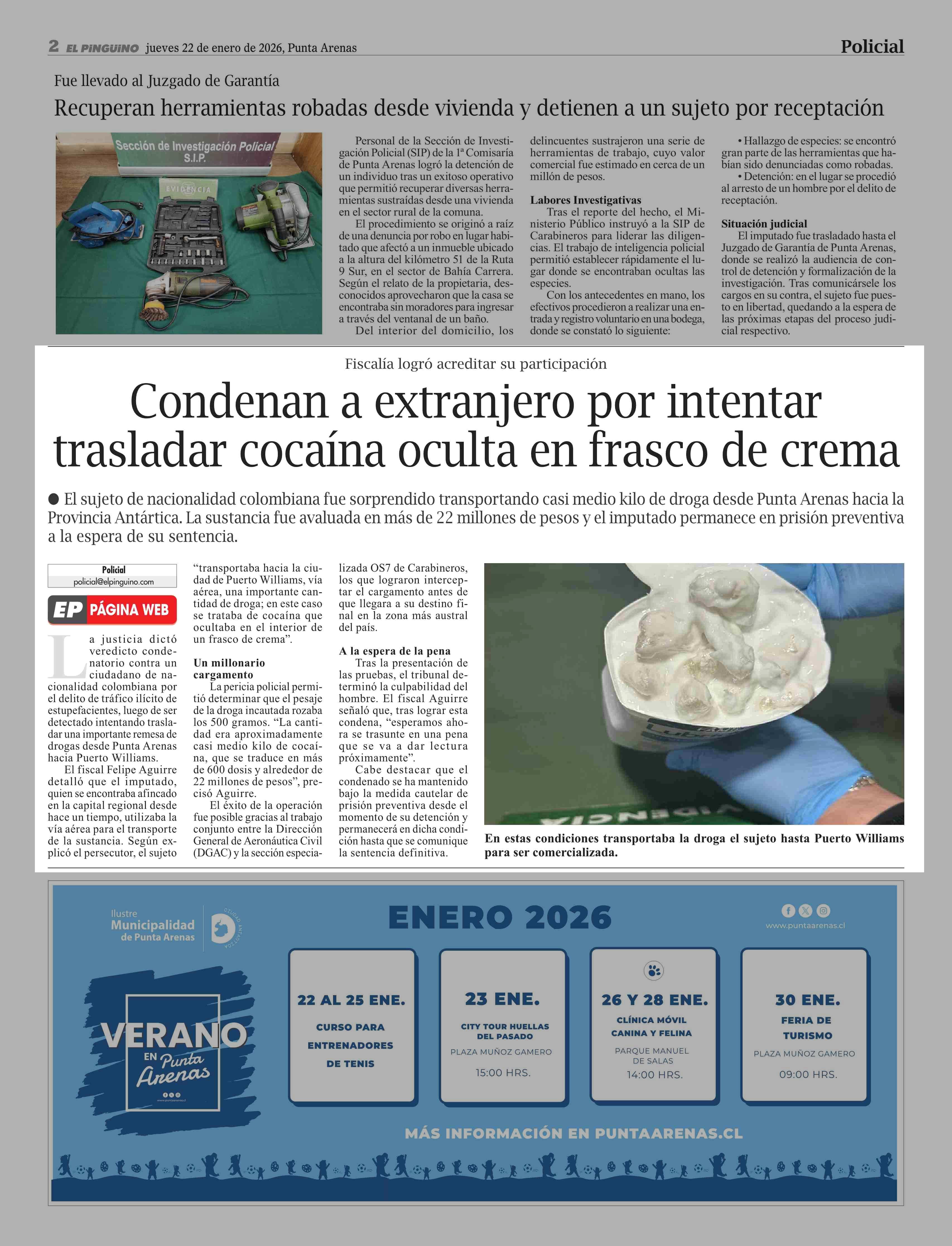 | Fecha: | 22-01-2026 | Sector: | Noticia general | Región: | Región de Magallanes y de la Antártica Chilena |
