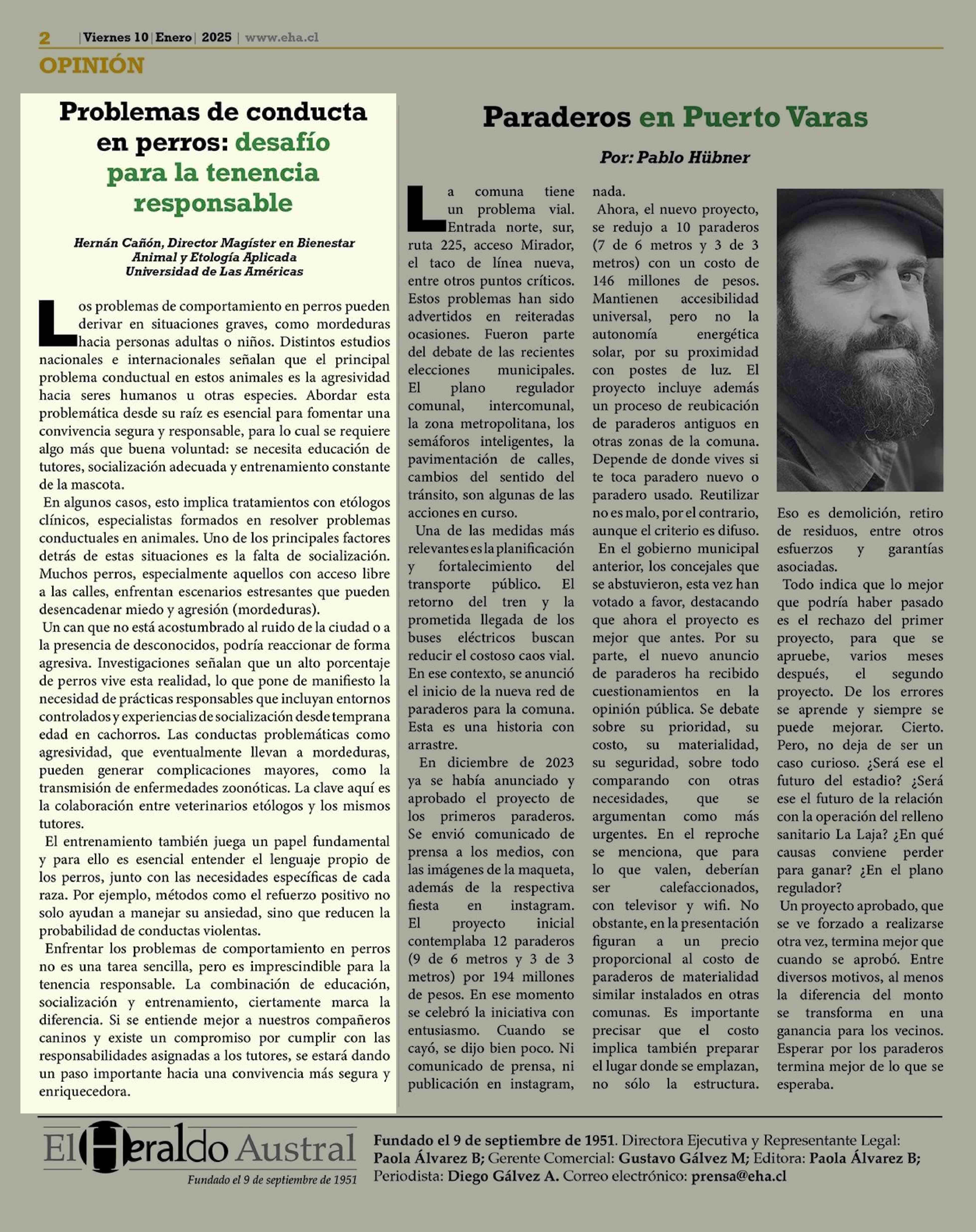 Problemas de conducta en perros: desafío para la tenencia responsable 10-01-2025 El Heraldo Austral |