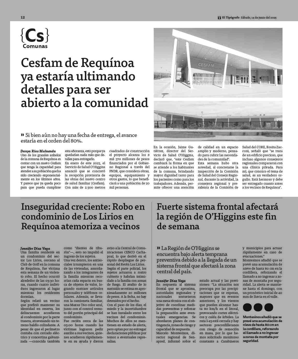| Fecha: | 14-06-2025 | Sector: | Noticia general | Región: | Región del Libertador General Bernardo O'Higgins |