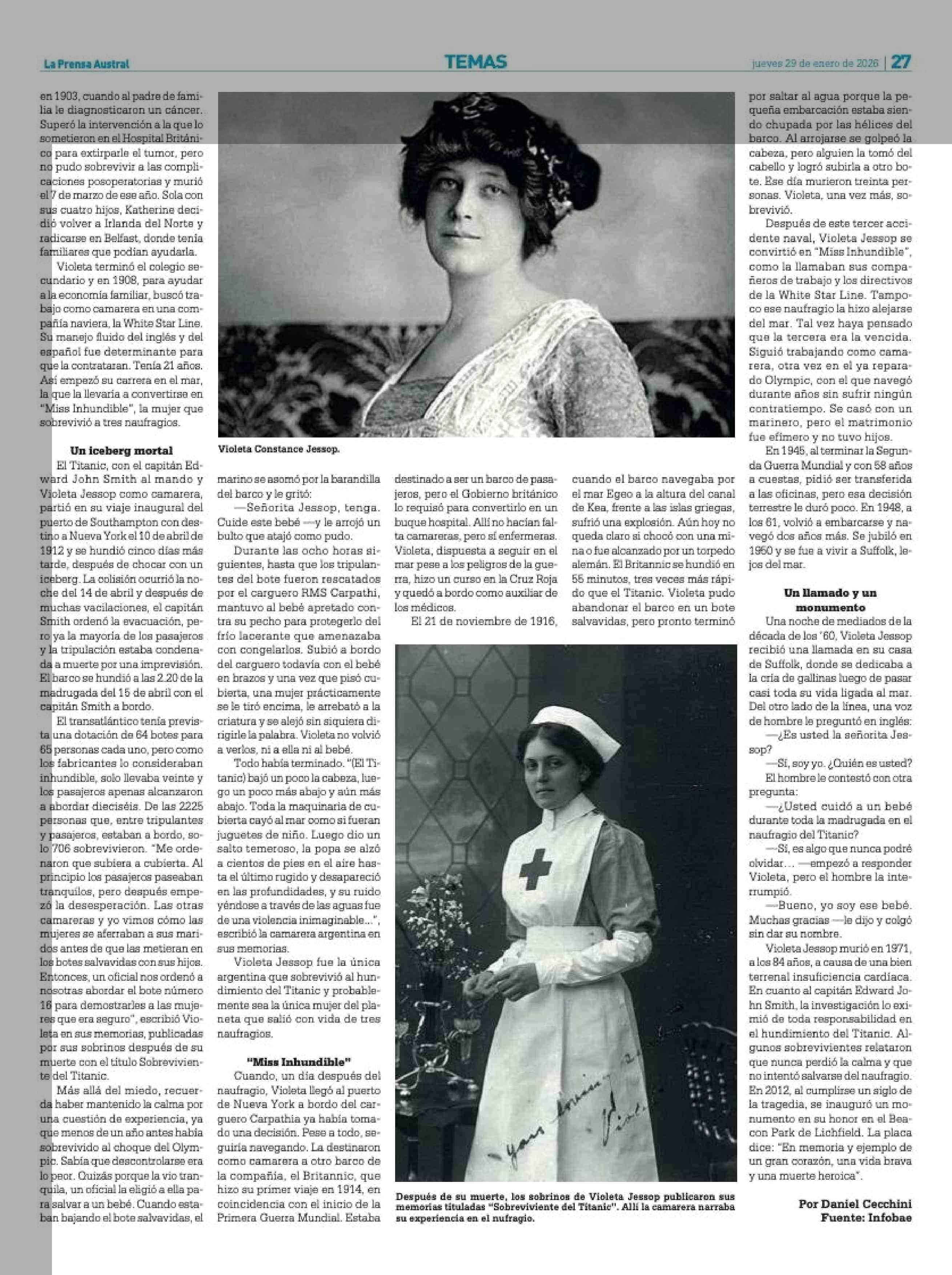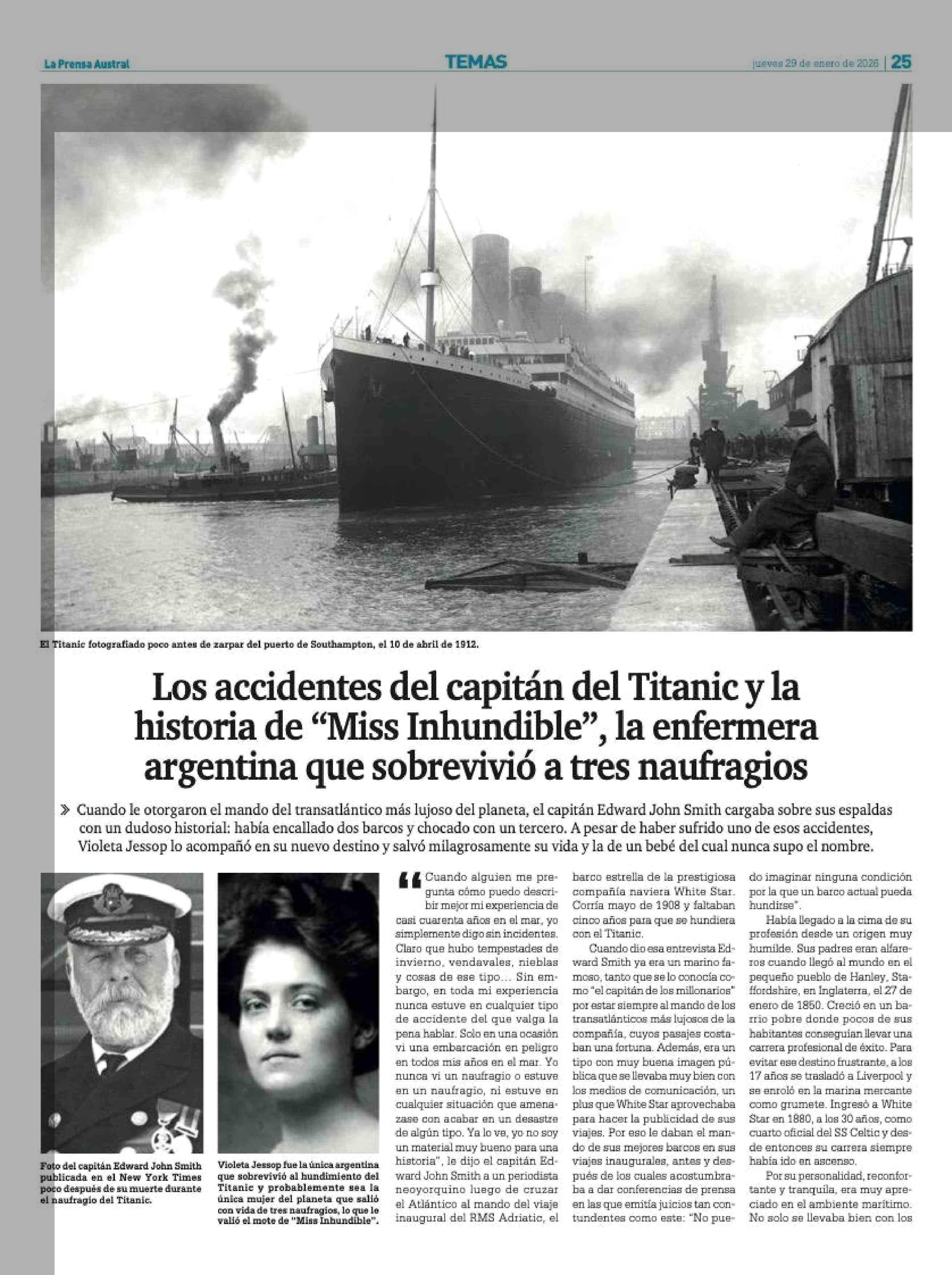 Título: Los accidentes del capitán del Titanic y la historia de "Miss Inhundible", la enfermera argentina que sobrevivió a tres naufragios