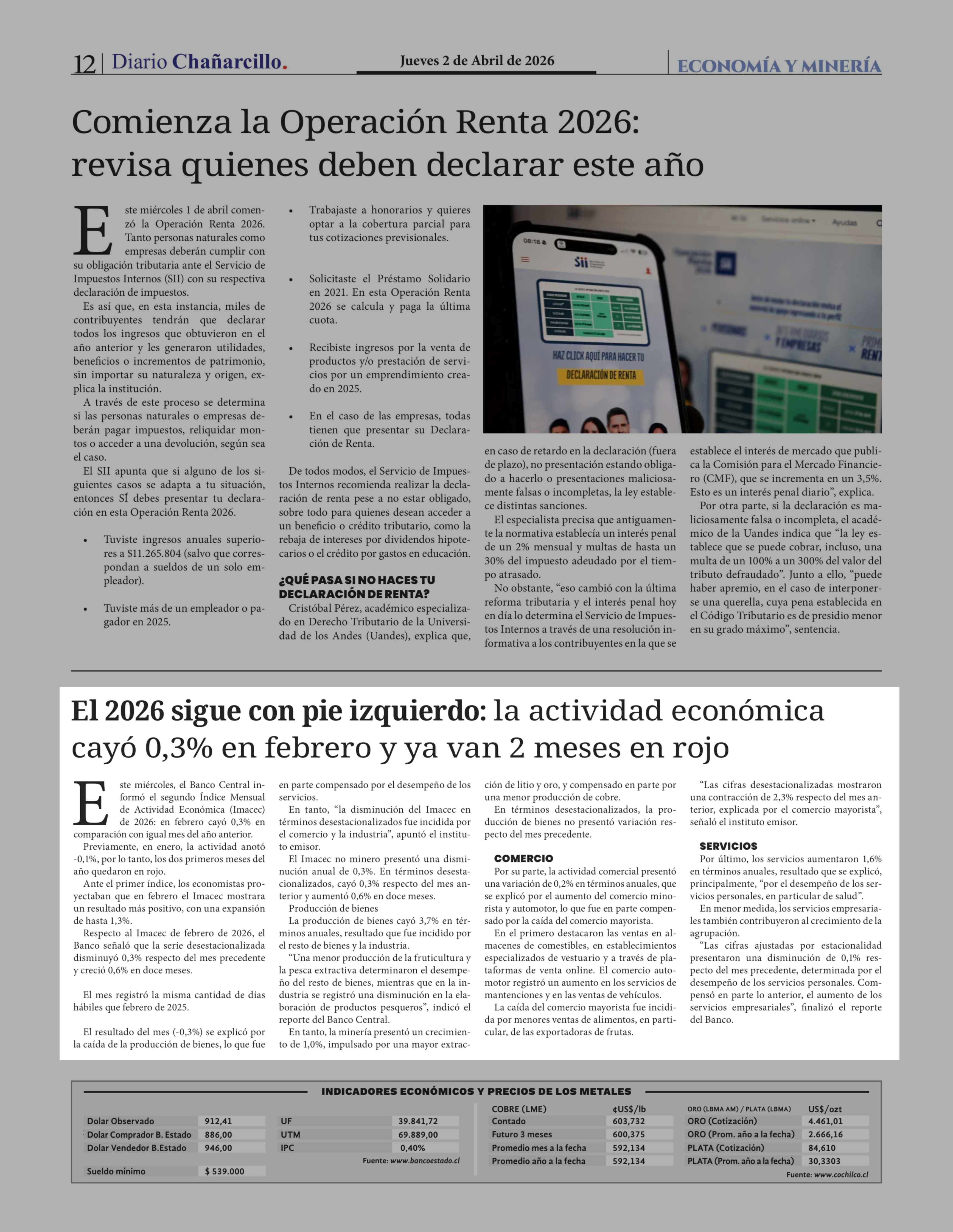 Fuente: Diario Chañarcillo (Diario Chanarcillo) Página(s): 12