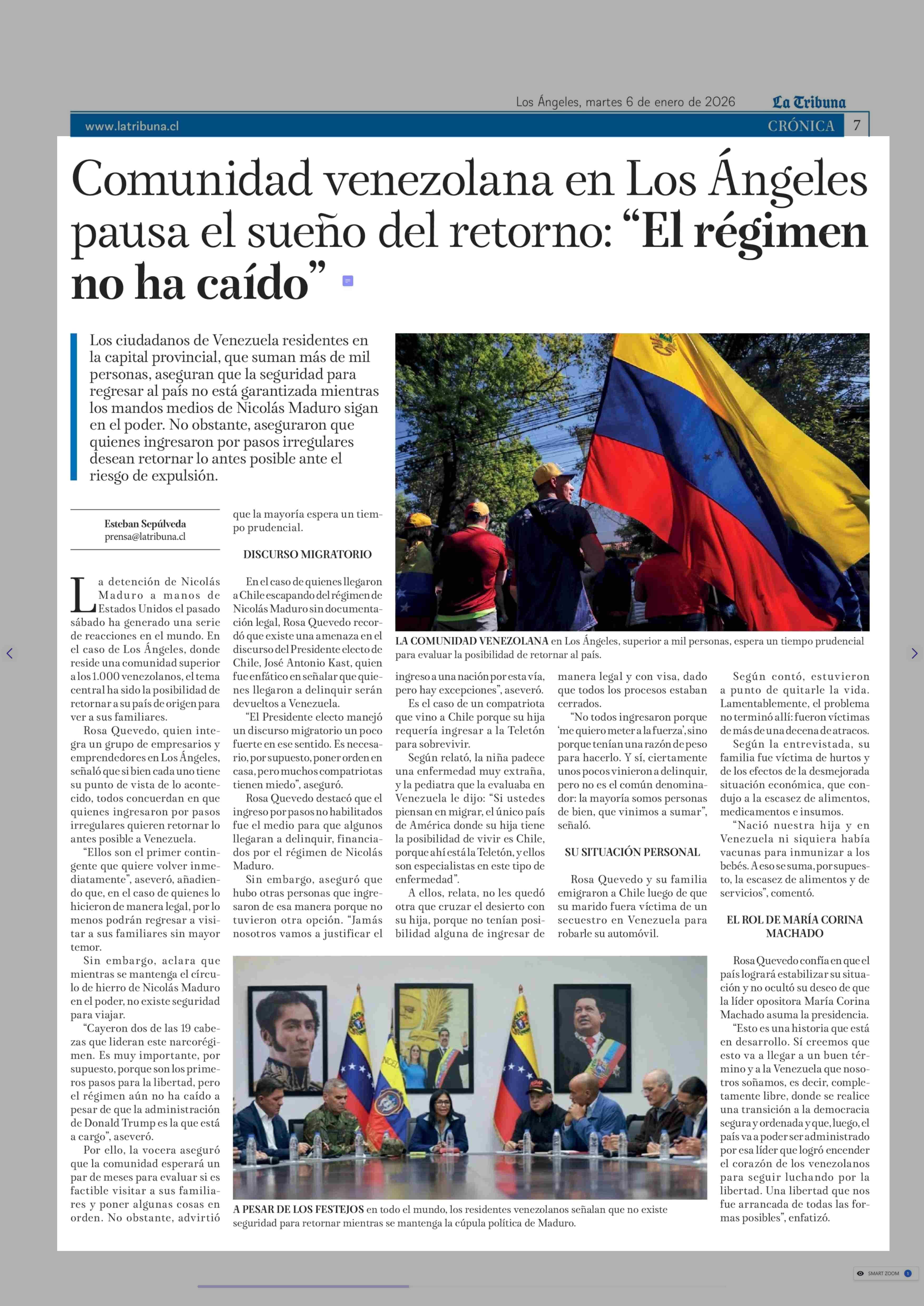 Comunidad venezolana en Los Angeles pausa el sueño del retorno: "El régimen no ha caído" 06-01-2026 La Tribuna |