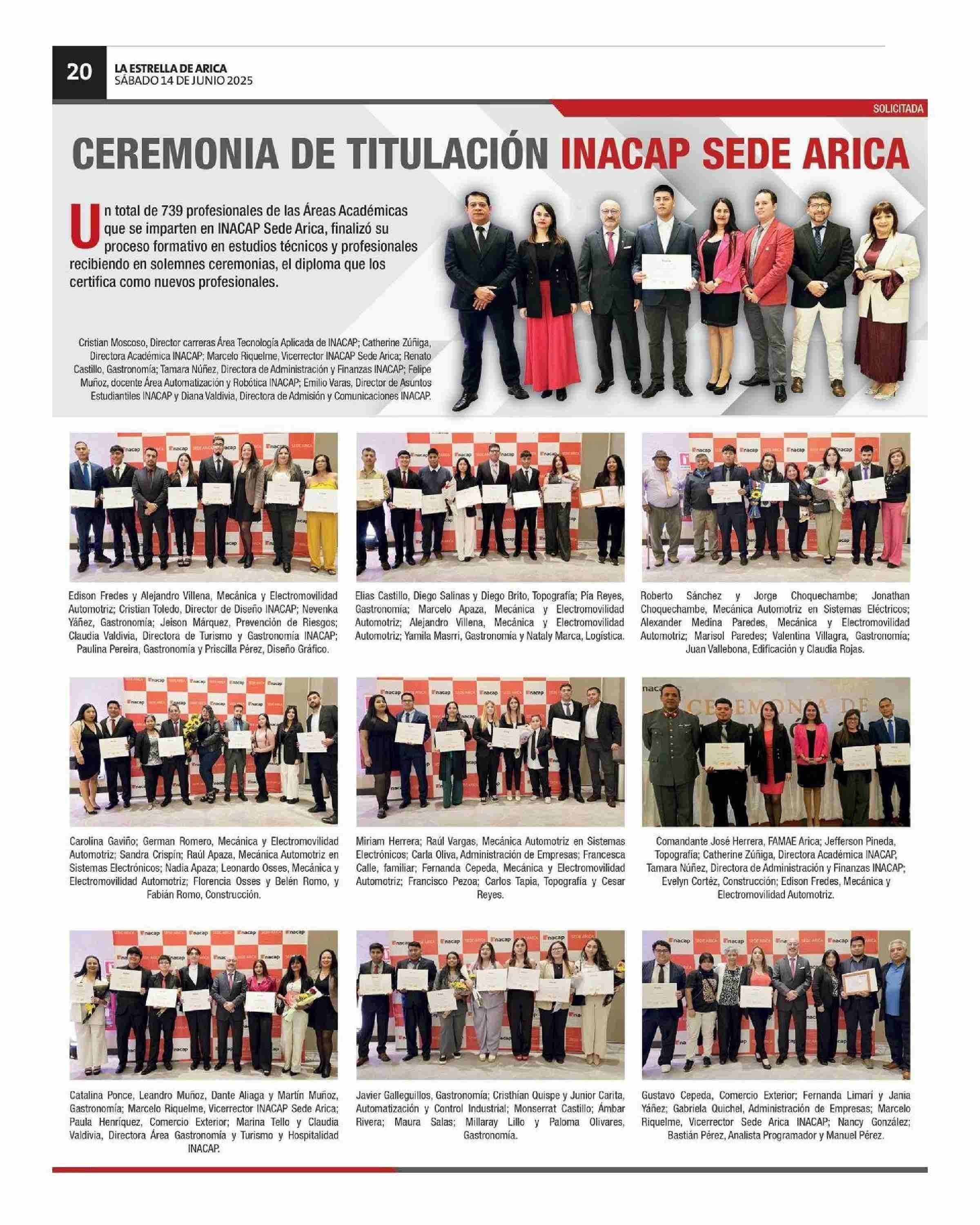 CEREMONIA DE TITULACIÓN INACAP SEDE ARICA 14-06-2025 La Estrella de Arica |