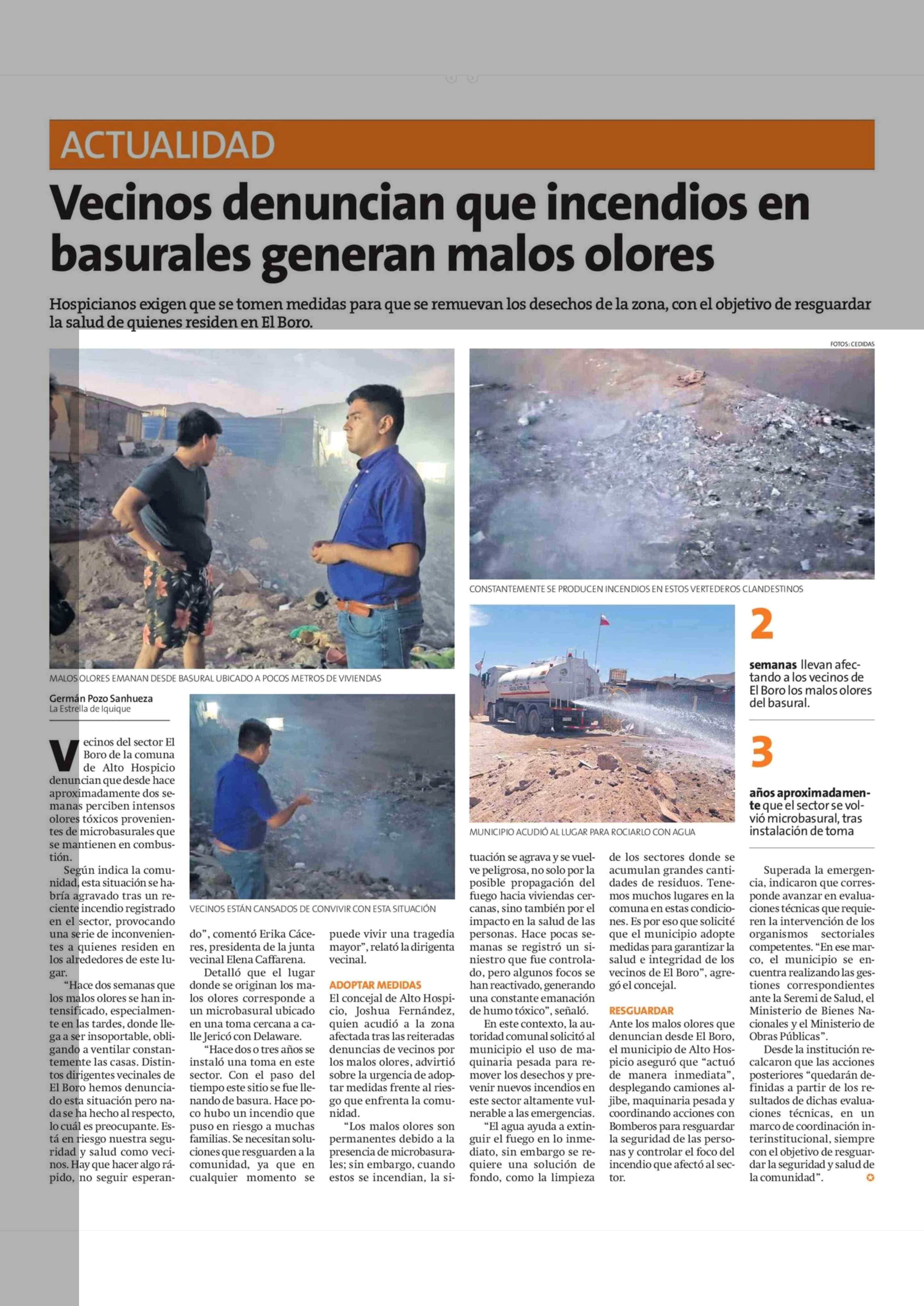 Vecinos denuncian que incendios en basurales generan malos olores 31-01-2026 La Estrella de Iquique |