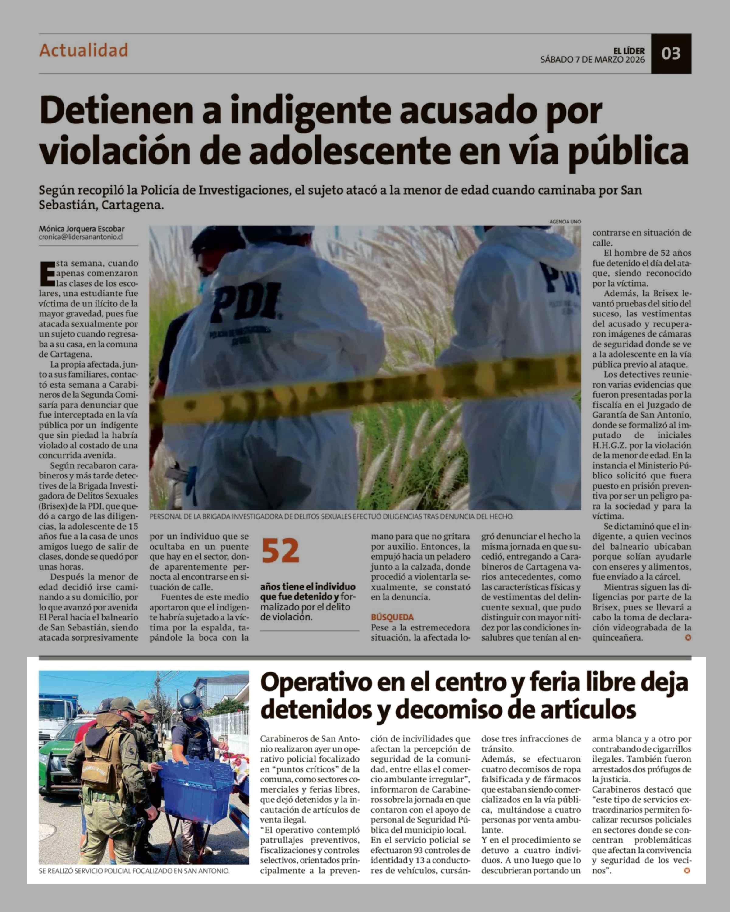Operativo en el centro y feria libre deja detenidos y decomiso de artículos 07-03-2026 El Líder |