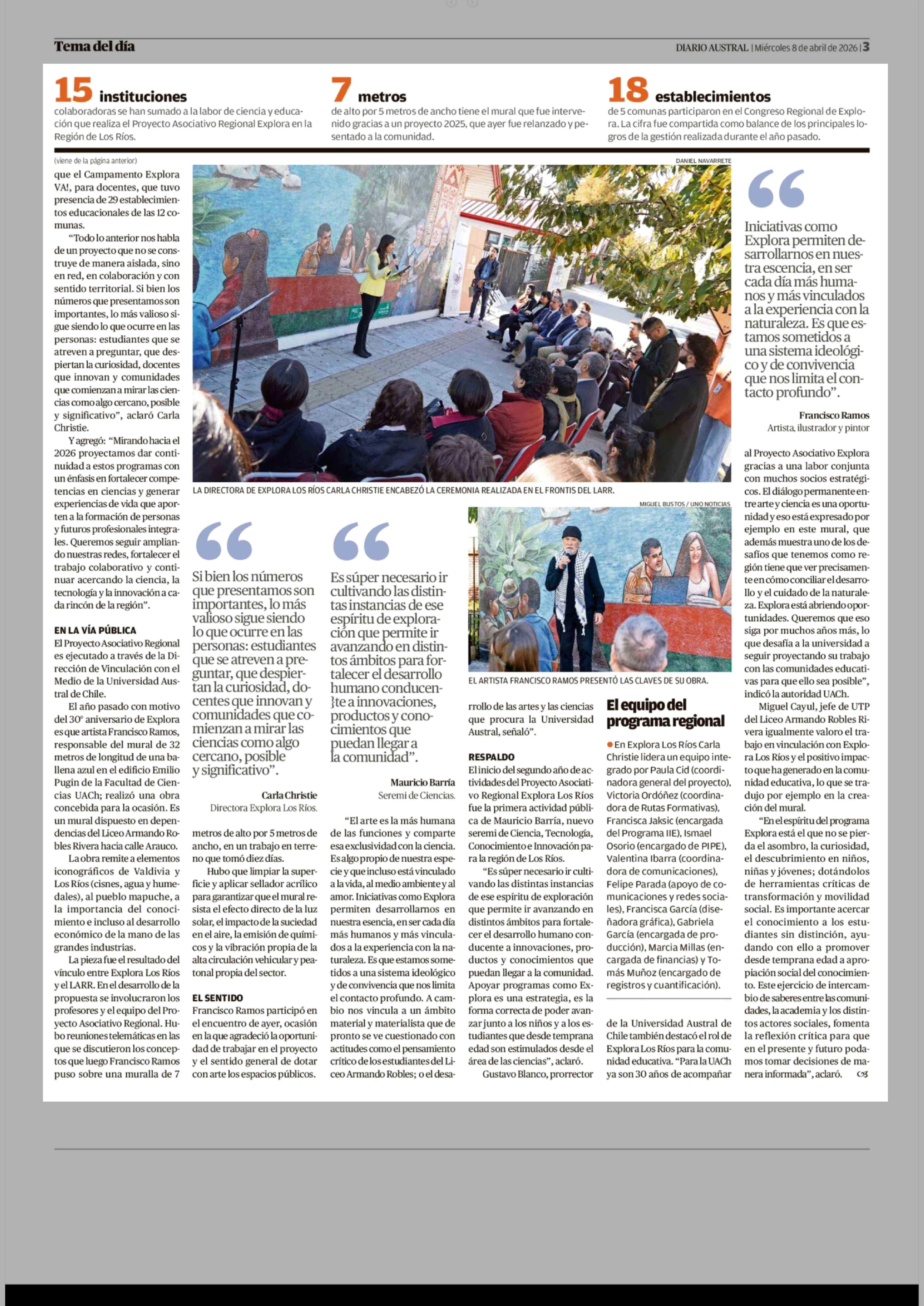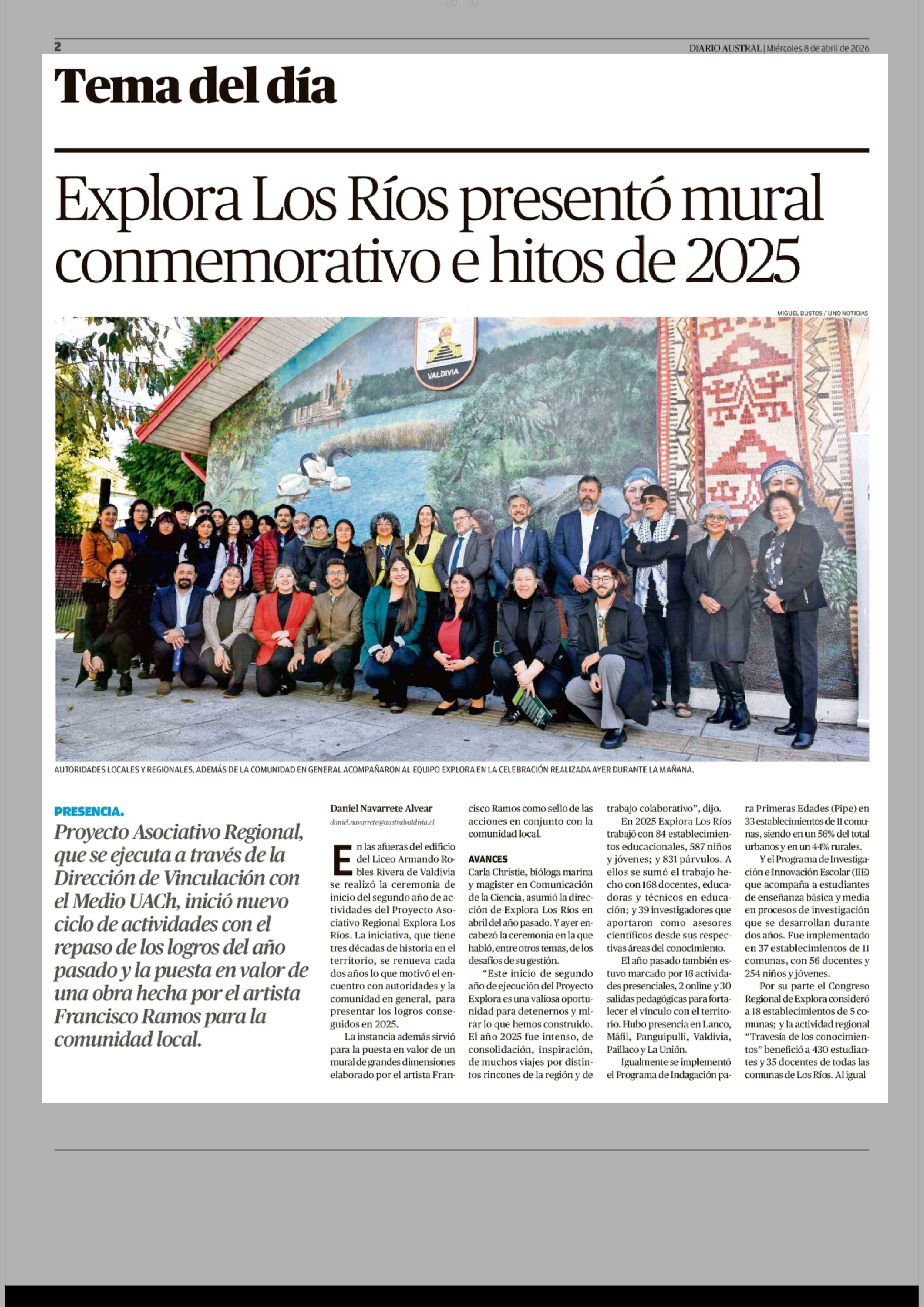 Título: Explora Los Ríos presentó mural conmemorativo e hitos de 2025