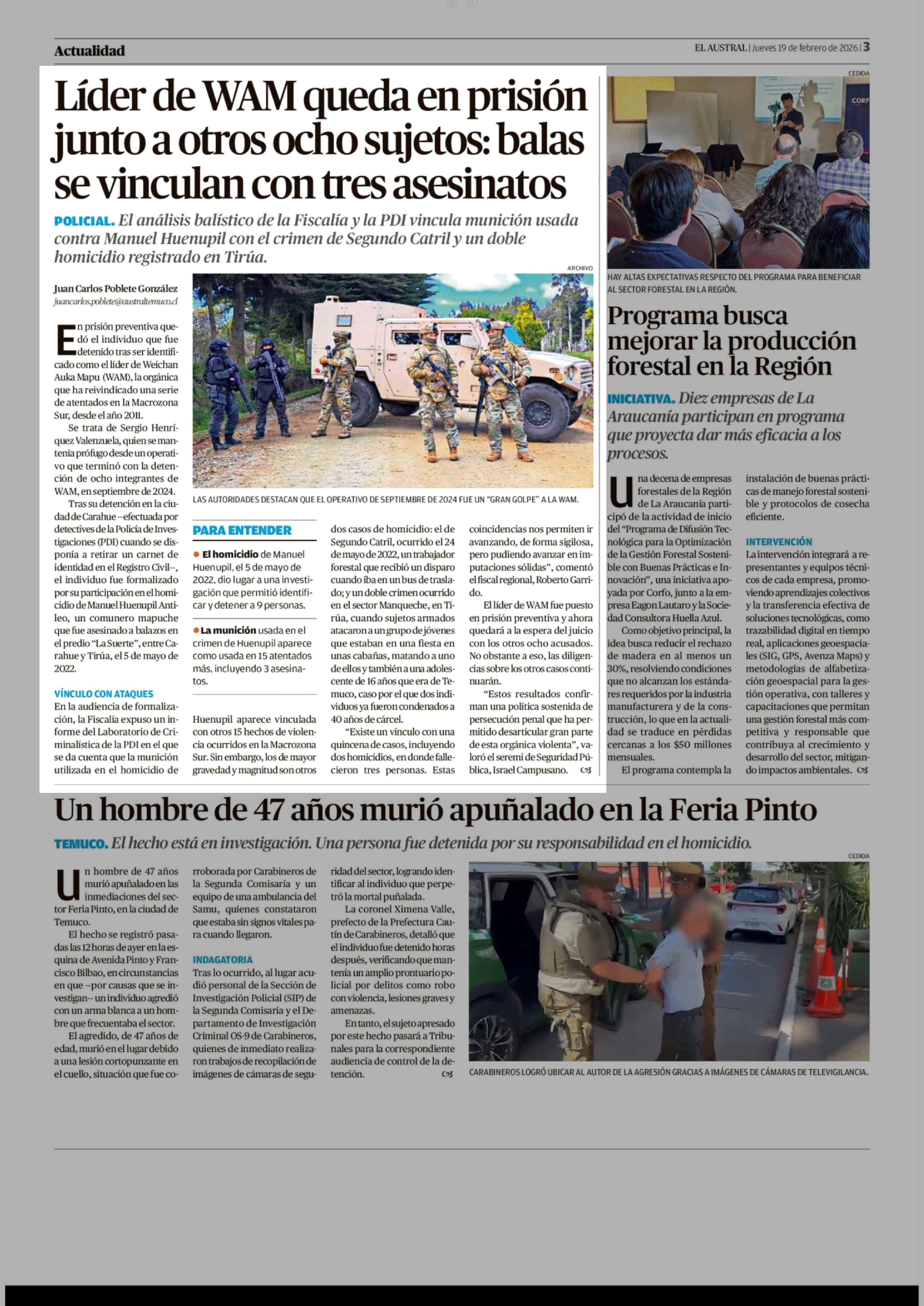 Fecha: 19-02-2026 Sector: Noticia general Región: Región de la Araucanía