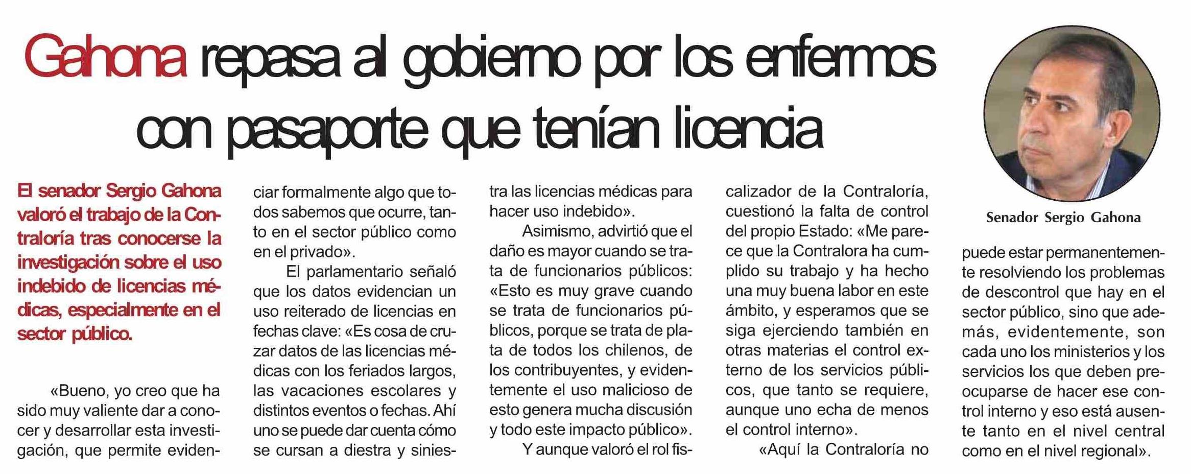 Gahona repasa al gobierno por los enfermos con pasaporte que tenían licencia 28-05-2025 Diario la Región |
