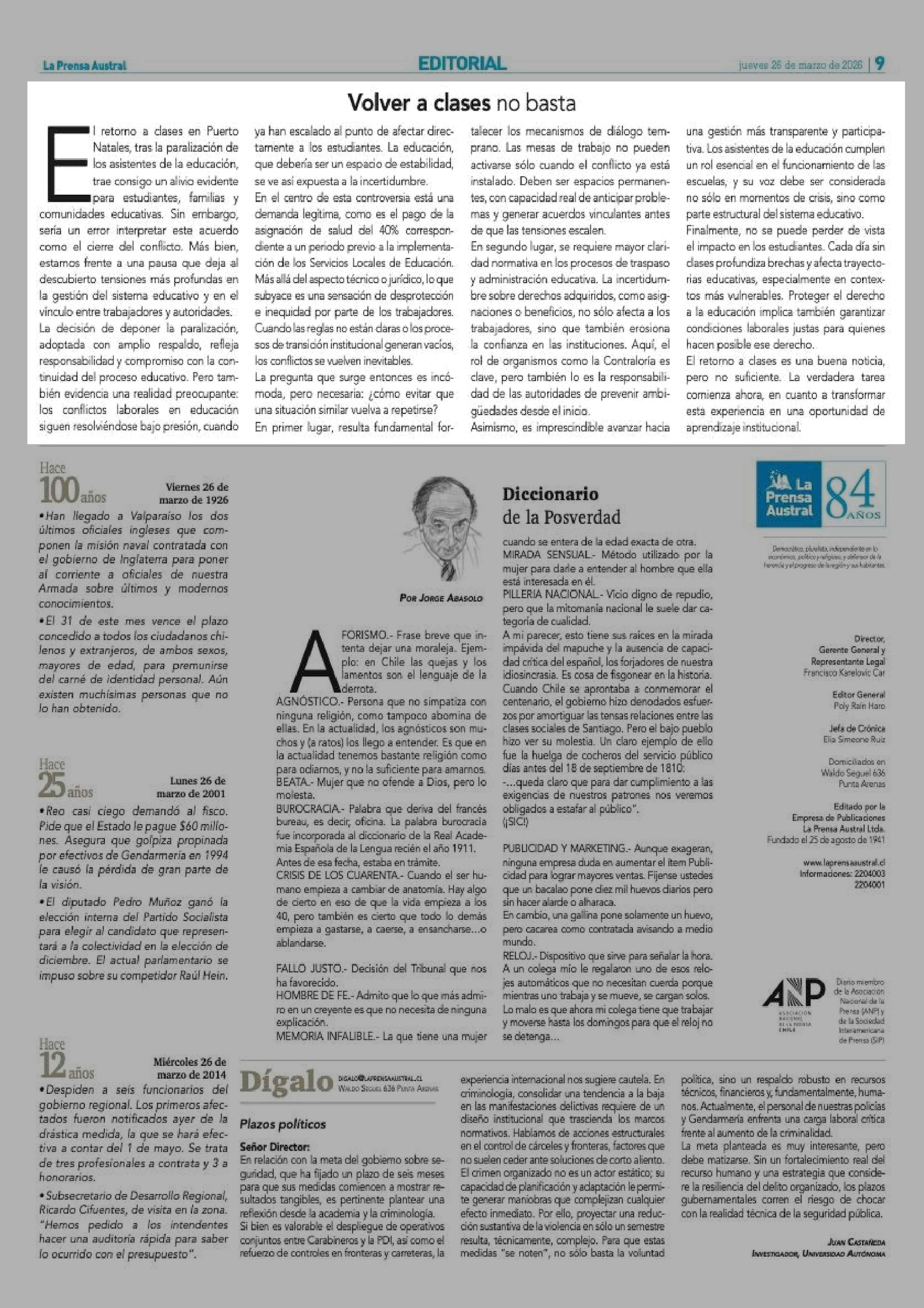 Fecha: 26-03-2026 Sector: Editorial Región: Región de Magallanes y de la Antártica Chilena