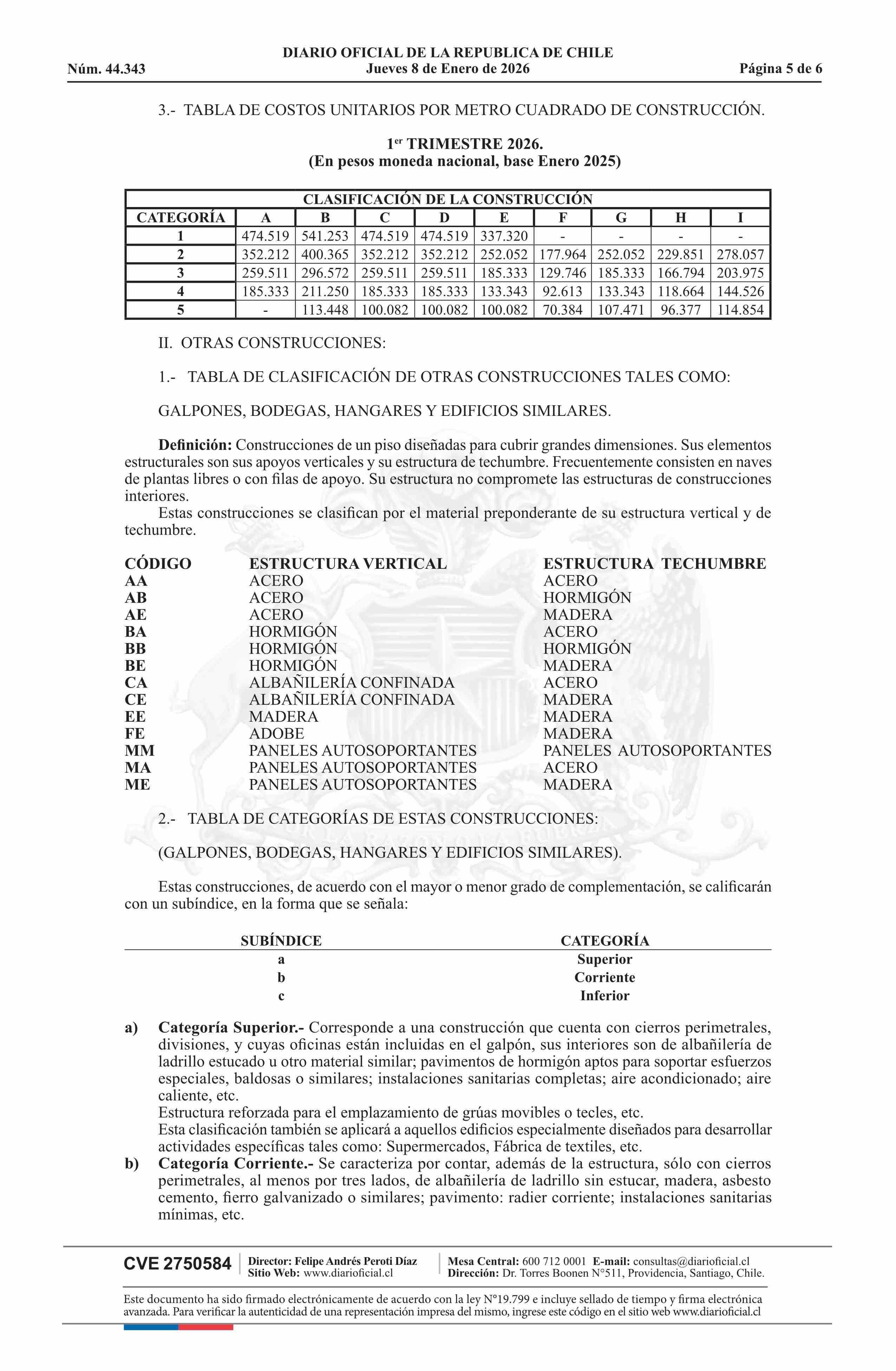 Resolución exenta número 2.016, de 2025.- Fija valores unitarios de construcción para aplicar en cálculo de derechos de permisos municipales 08-01-2026 DIARIO OFICIAL CHILE - BOLETÍN OFICIAL DE MINERÍA |