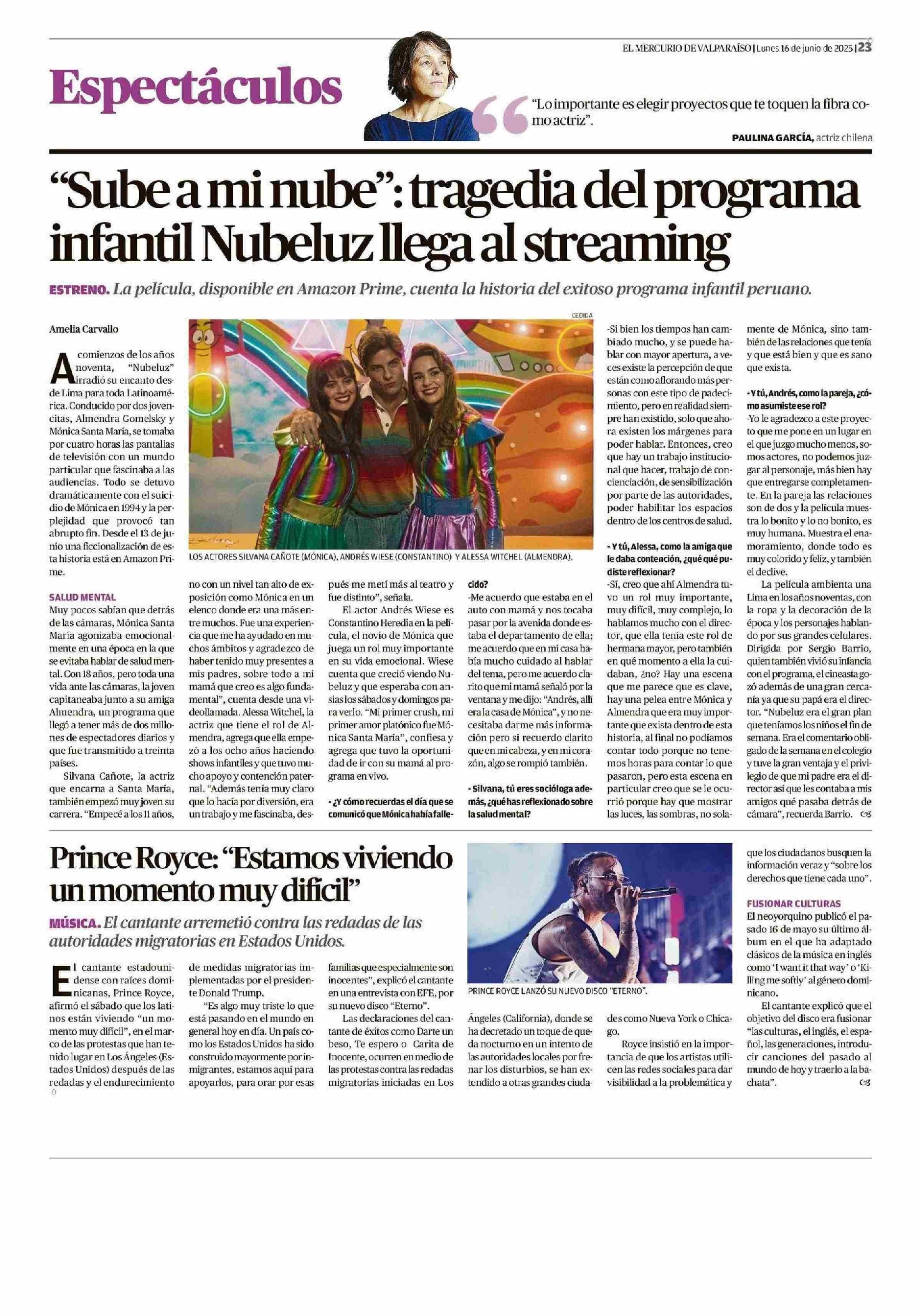 "Sube a mi nube": tragedia del programa infantil Nubeluz llega al streaming 16-06-2025 El Mercurio de Valparaíso |