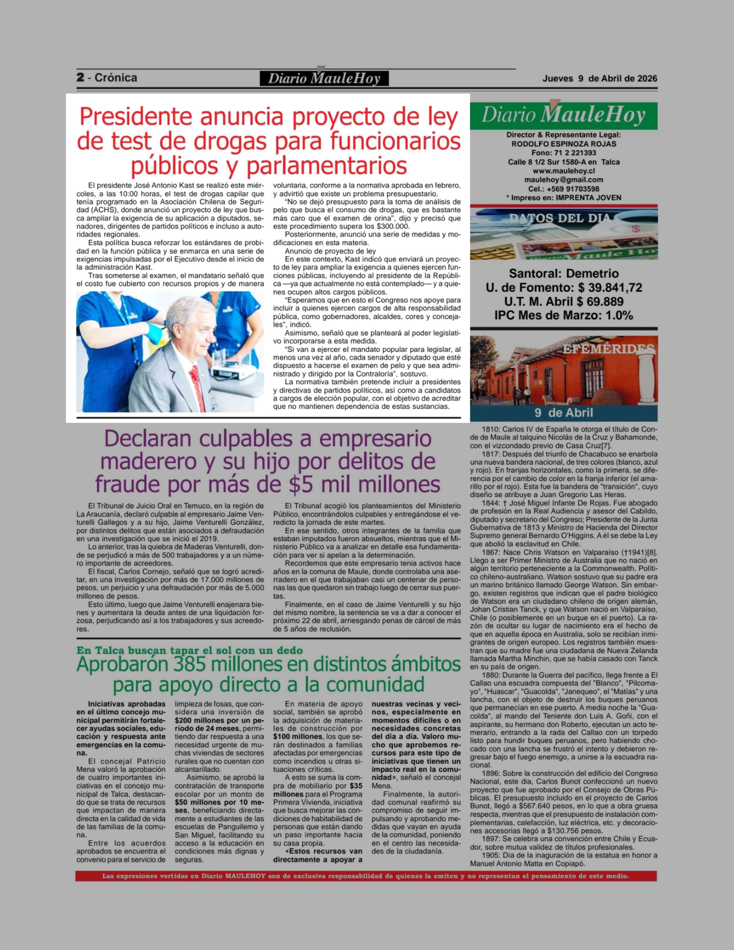 Fecha: 09-04-2026 Sector: Noticia general Región: Región del Maule