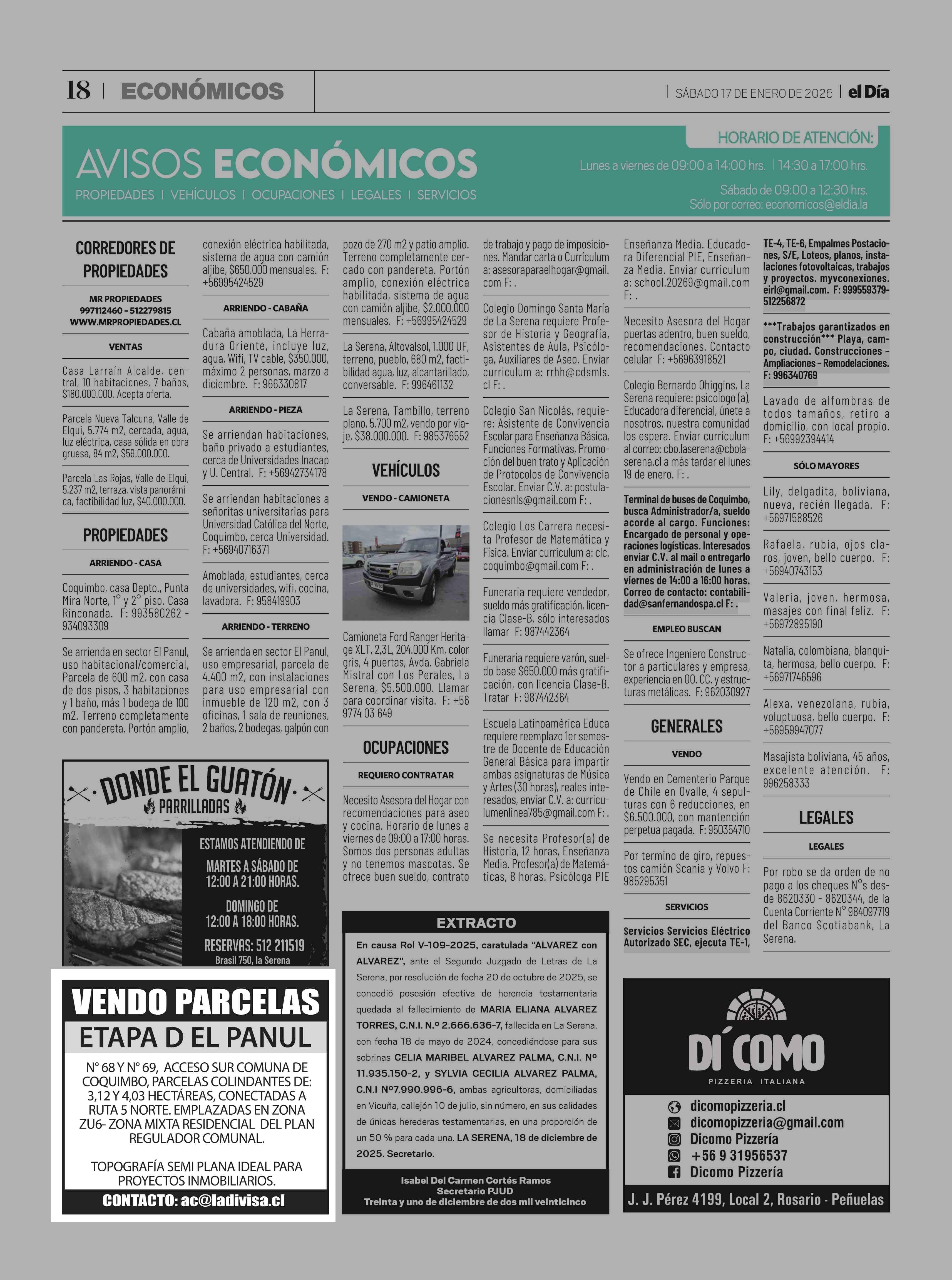 Aviso Grandes Terrenos: PUBLICIDAD 17-01-2026 El Día |