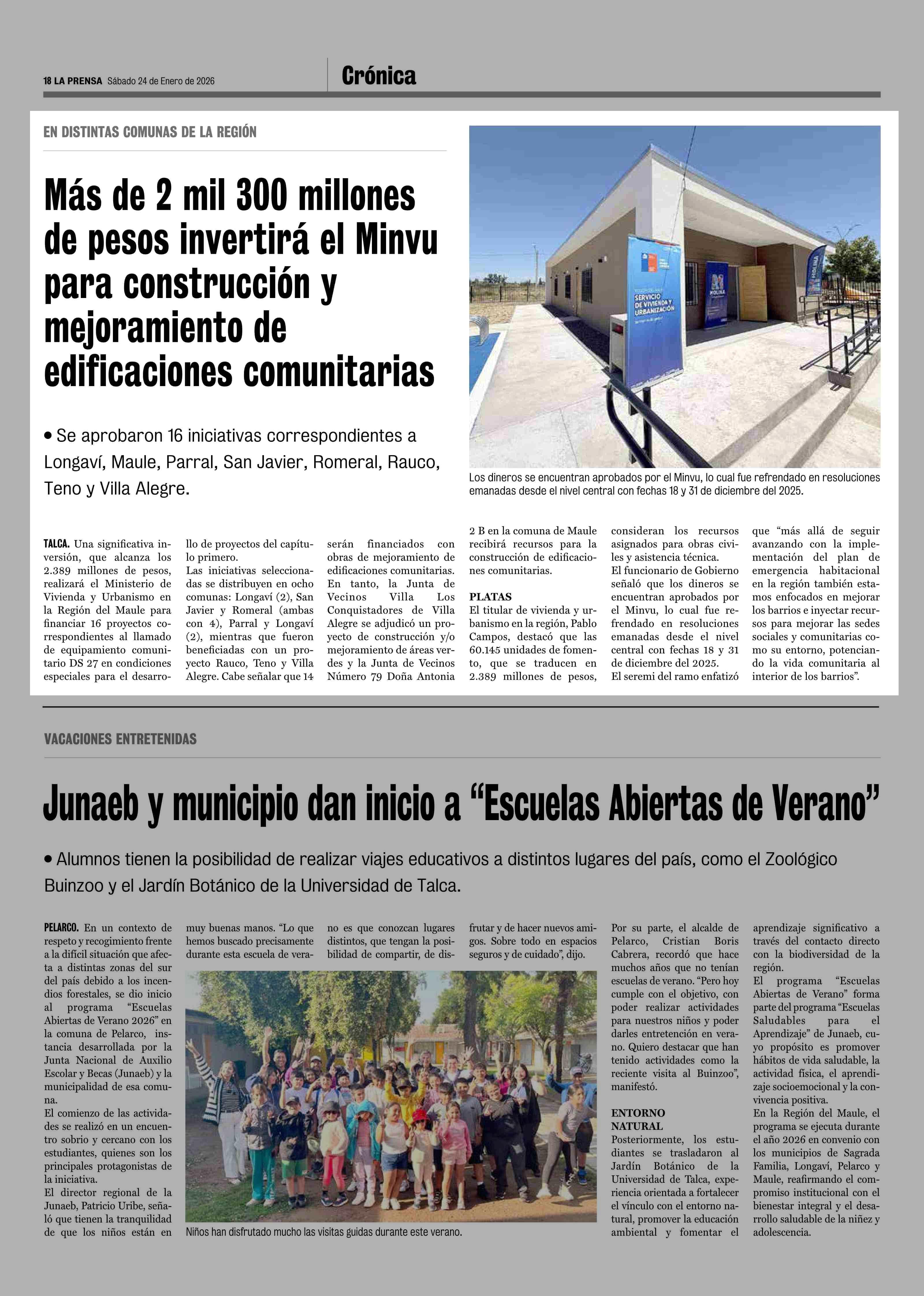 Fecha: 24-01-2026 Sector: Noticia general Región: Región del Maule