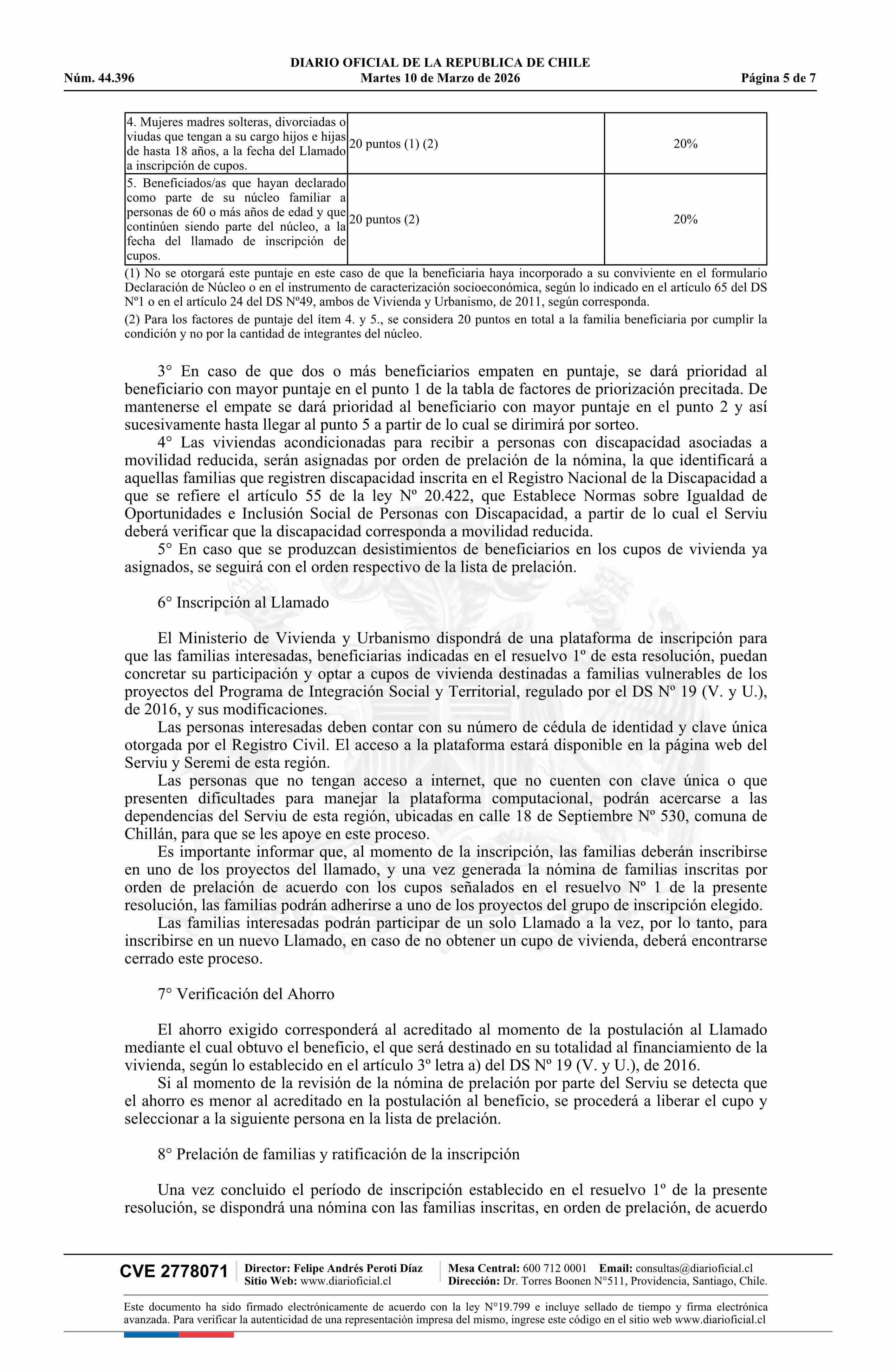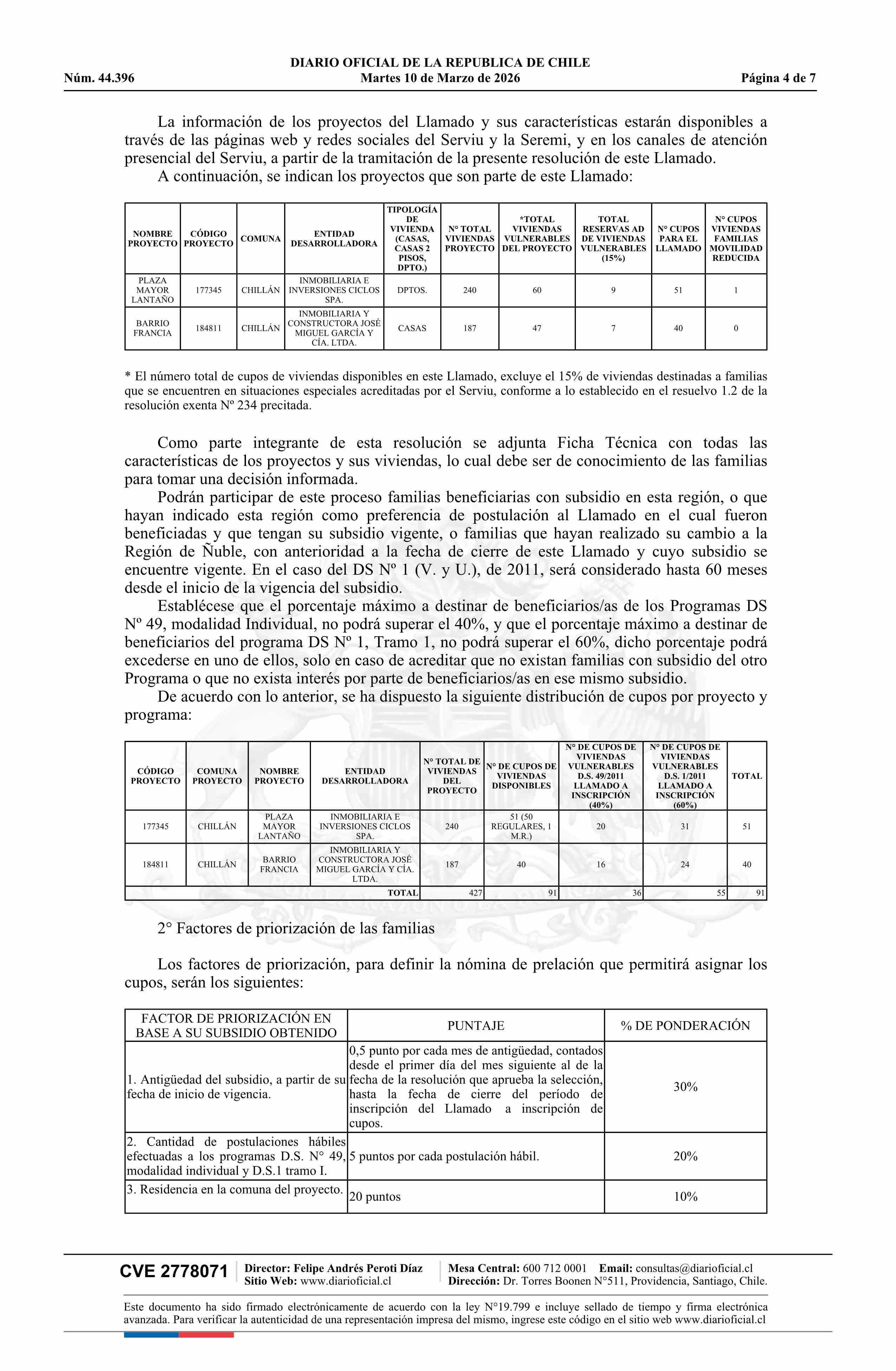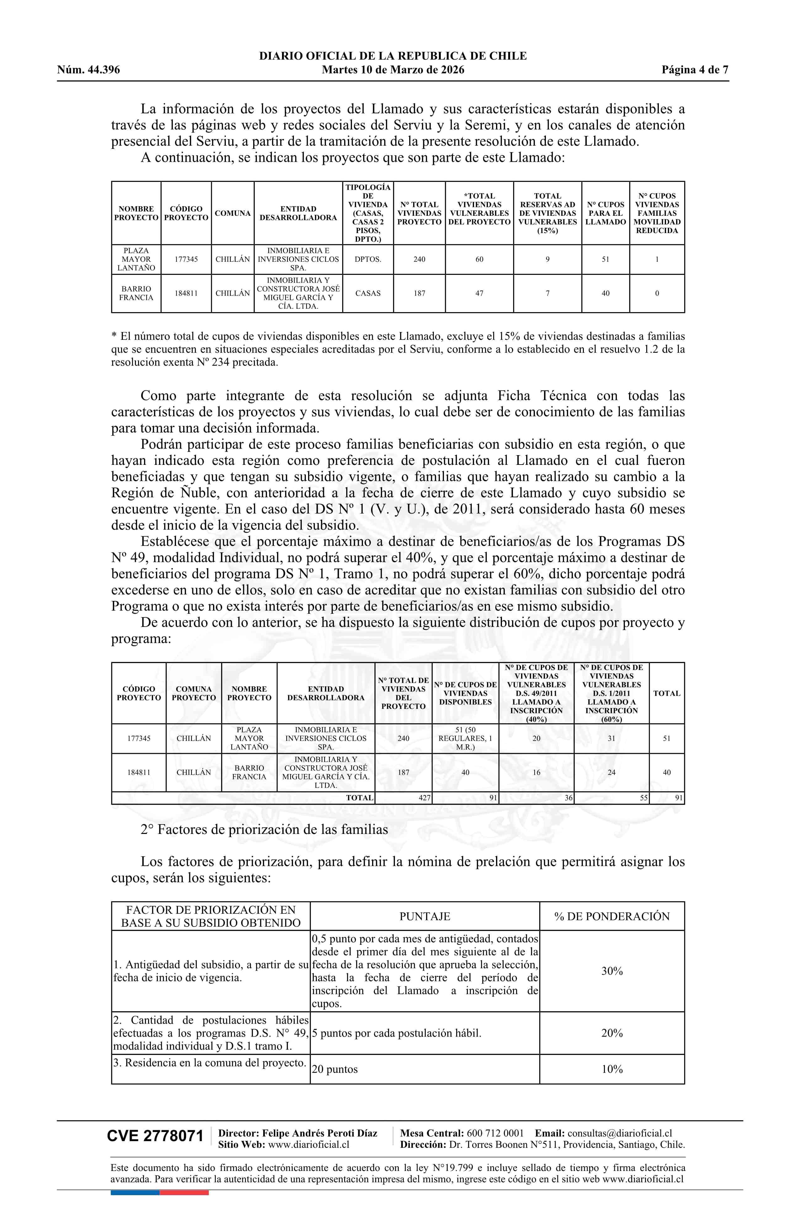 | Título: | Resolución exenta número 137, de 2026.- Llama a inscripción para asignación de cupos de viviendas destinadas a familias vulnerables beneficiarias de subsidios habitacionales, a los proyectos seleccionados, Plaza Mayor Lantaño y Barrio Francia, del Programa de Integración Social y Territorial, regula |