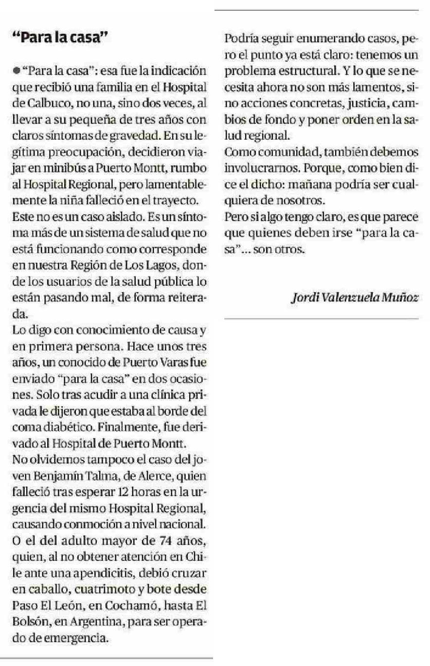 Cartas: “Para la casa” 18-05-2025 El Austral de Osorno |