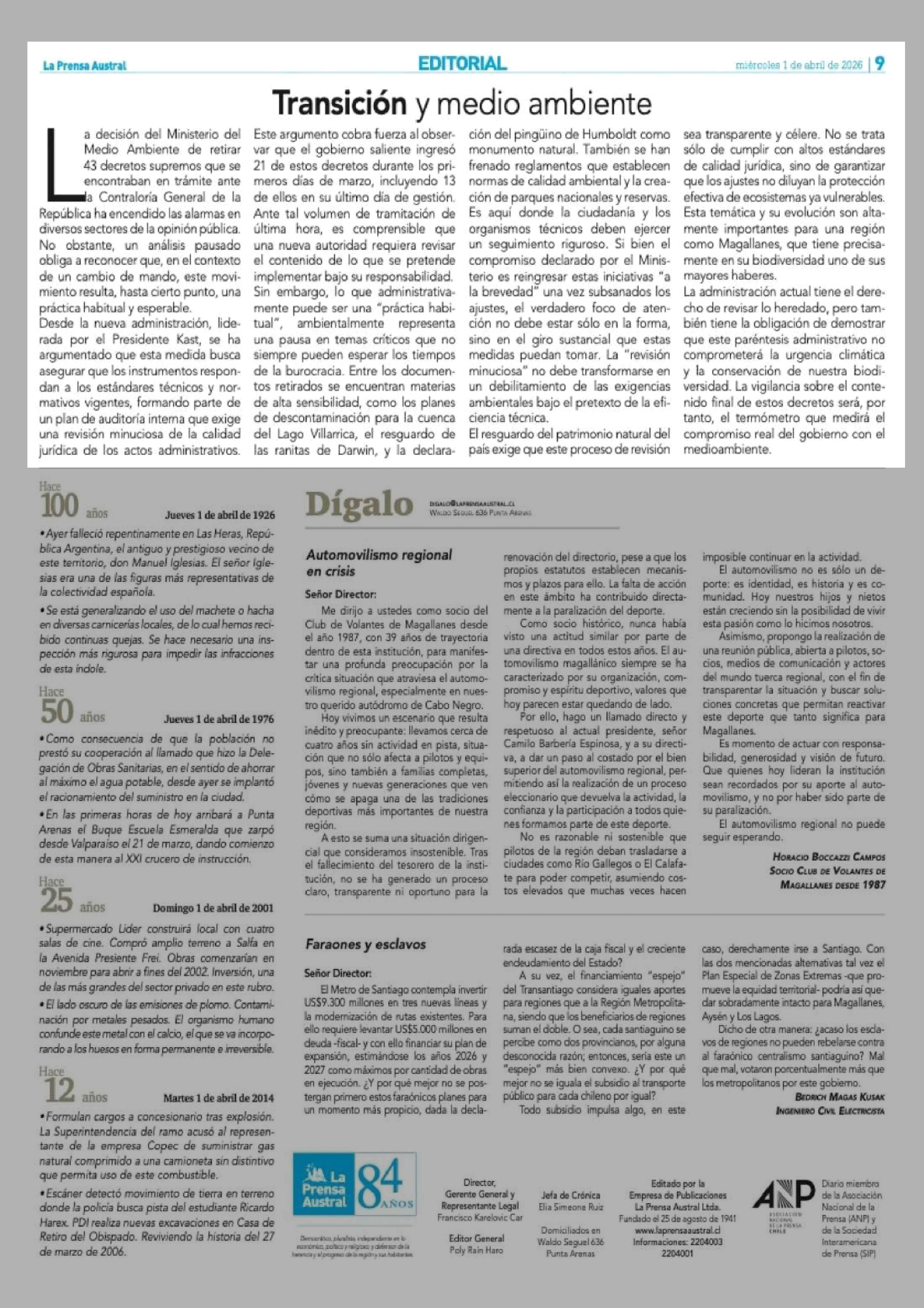 Fecha: 01-04-2026 Sector: Editorial Región: Región de Magallanes y de la Antártica Chilena