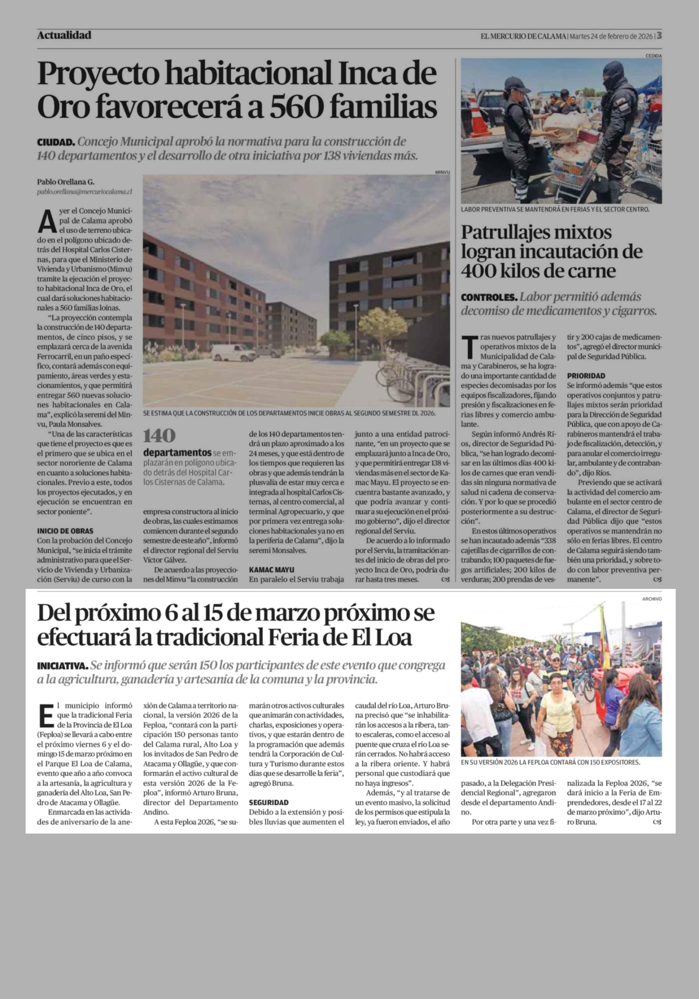 Del próximo 6 al 15 de marzo próximo se efectuará la tradicional Feria de El Loa 24-02-2026 El Mercurio de Calama |