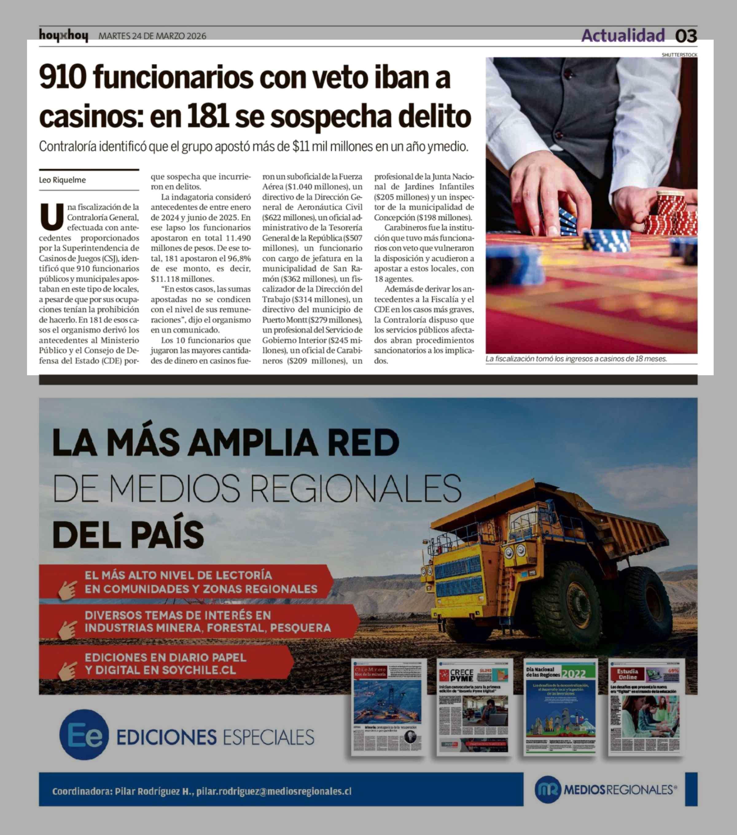 910 Funcionarios con veto iban a casinos: en 181 se sospecha delito 24-03-2026 Hoy x Hoy |