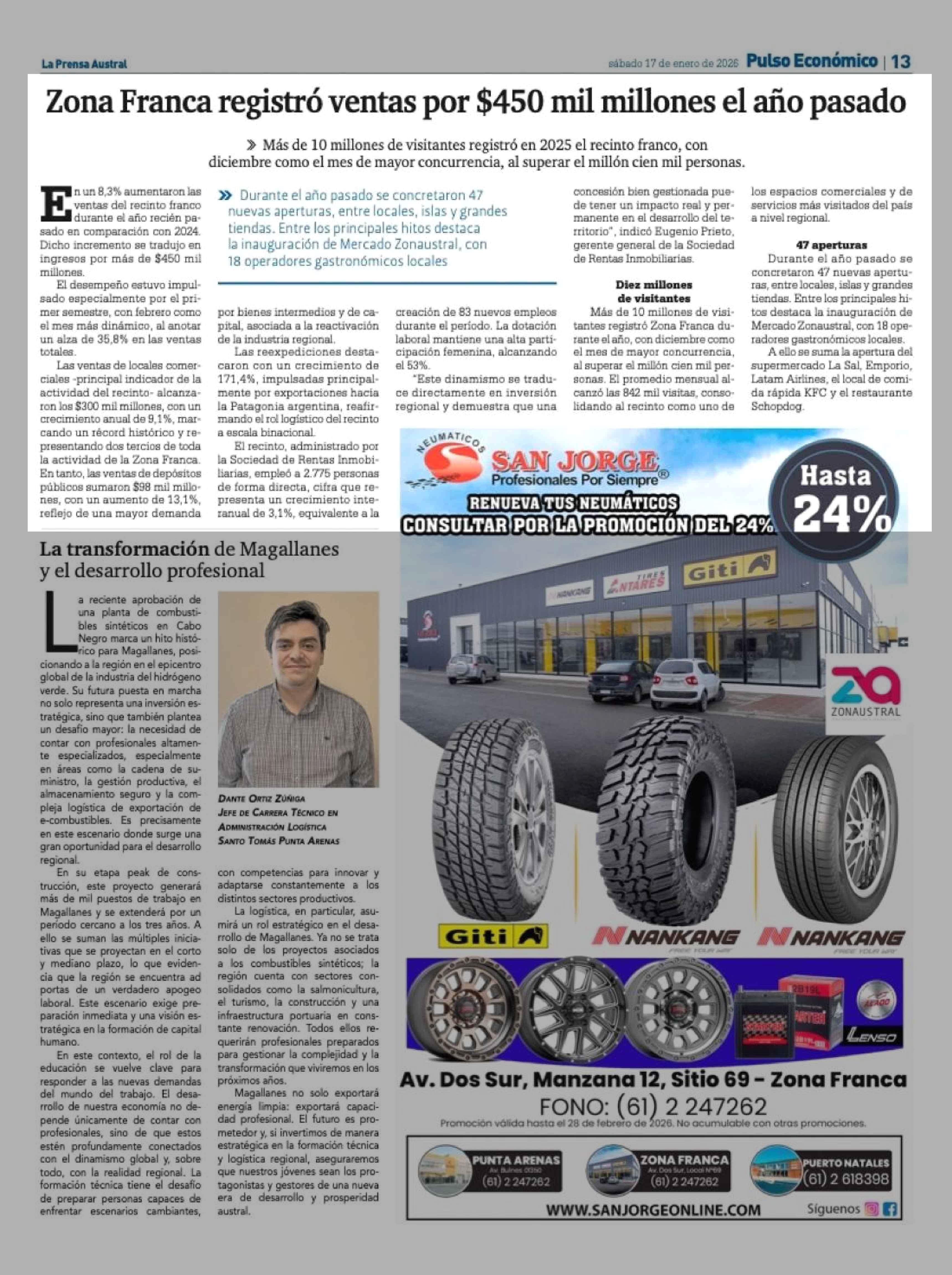 Zona Franca registró ventas por $450 mil millones el año pasado 17-01-2026 La Prensa Austral |