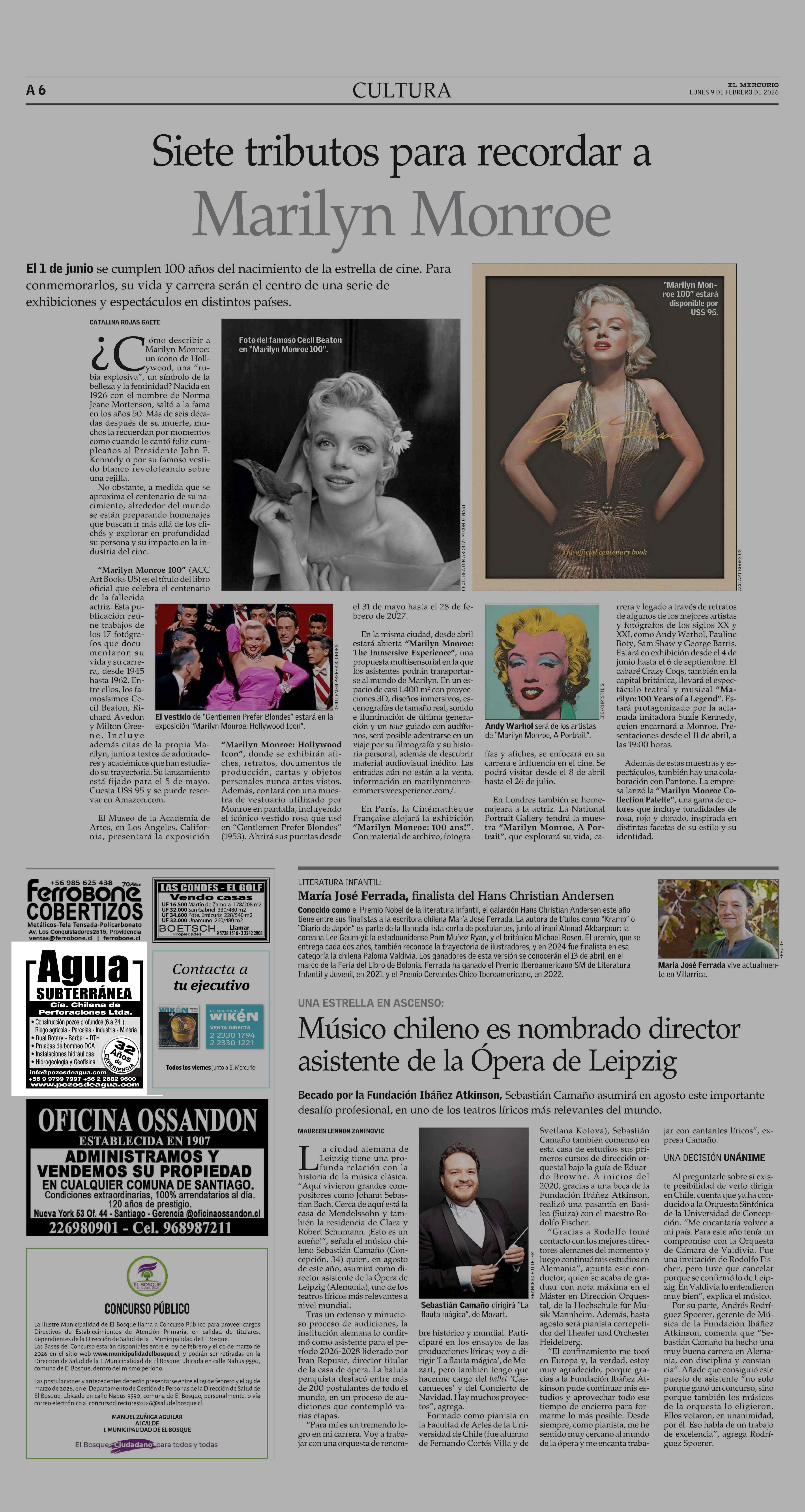 AVISO PUBLICITARIO: AGUA SUBTERRÁNEA 09-02-2026 El Mercurio |