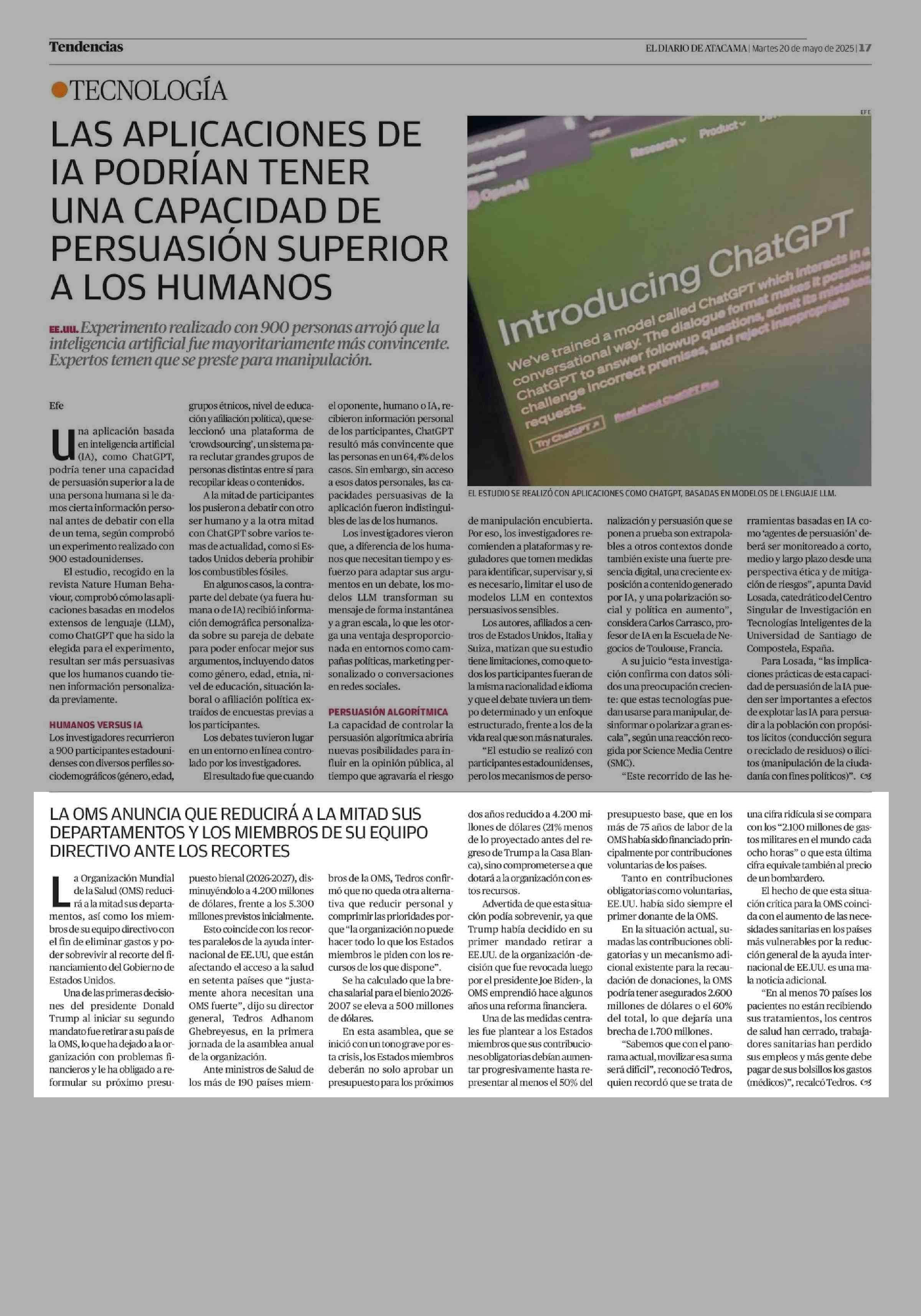LA OMS ANUNCIA QUE REDUCIRÁ ALA MITAD SUS DEPARTAMENTOS Y LOS MIEMBROS DE SU EQUIPO DIRECTIVO ANTE LOS RECORTES 20-05-2025 El Diario de Atacama |