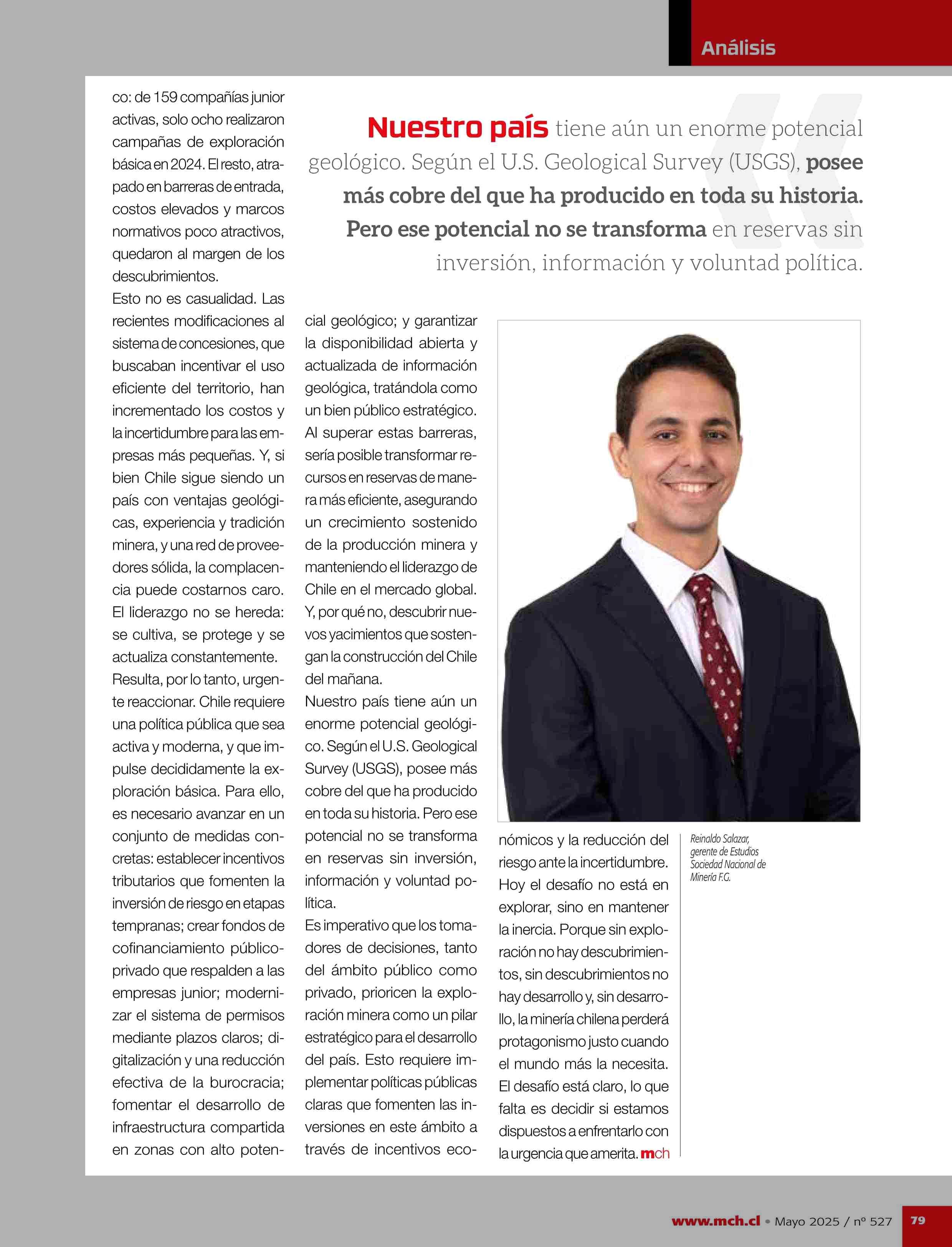 Título: Chile y la exploración minera: romper la inercia para no perder el liderazgo