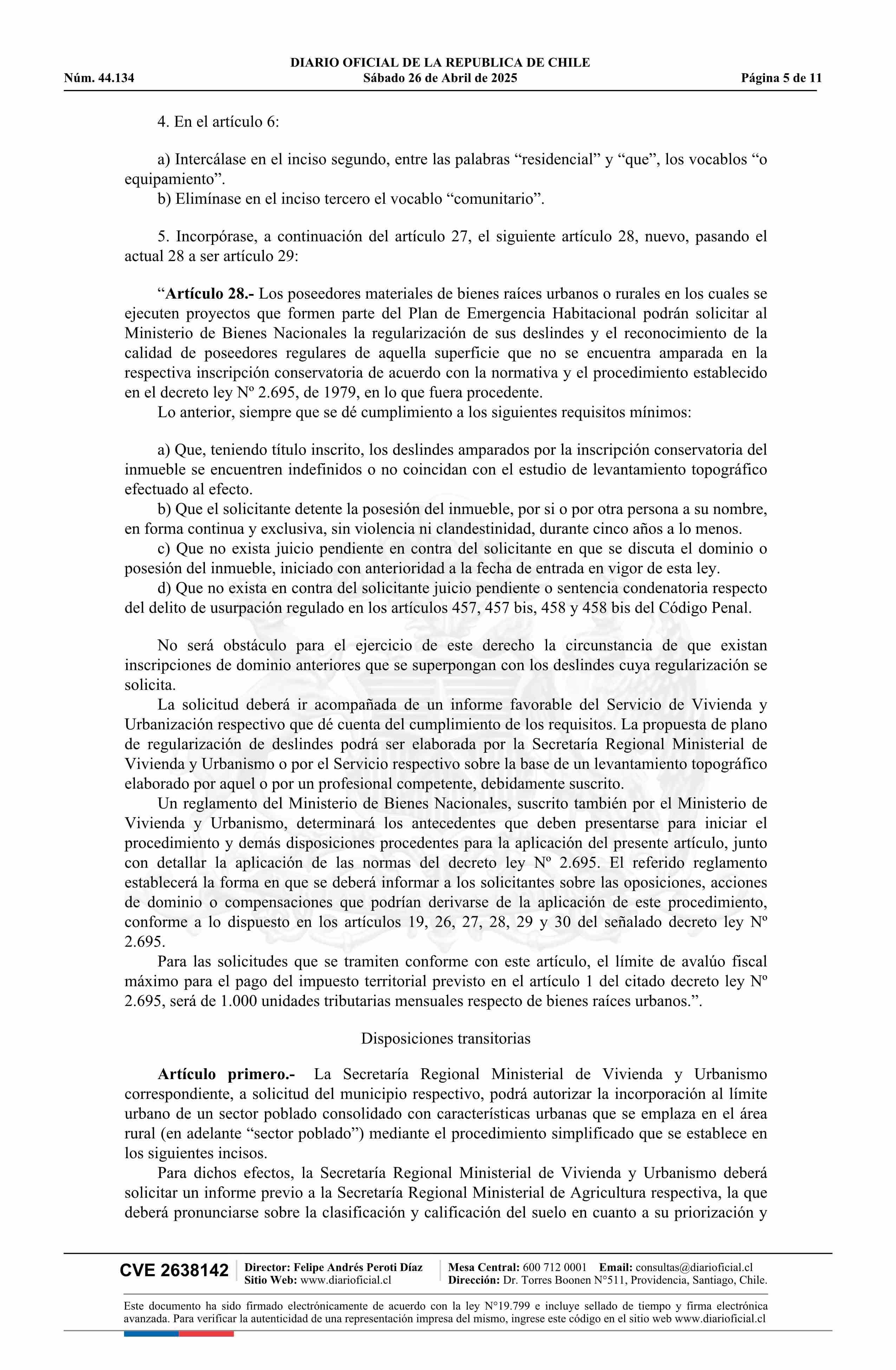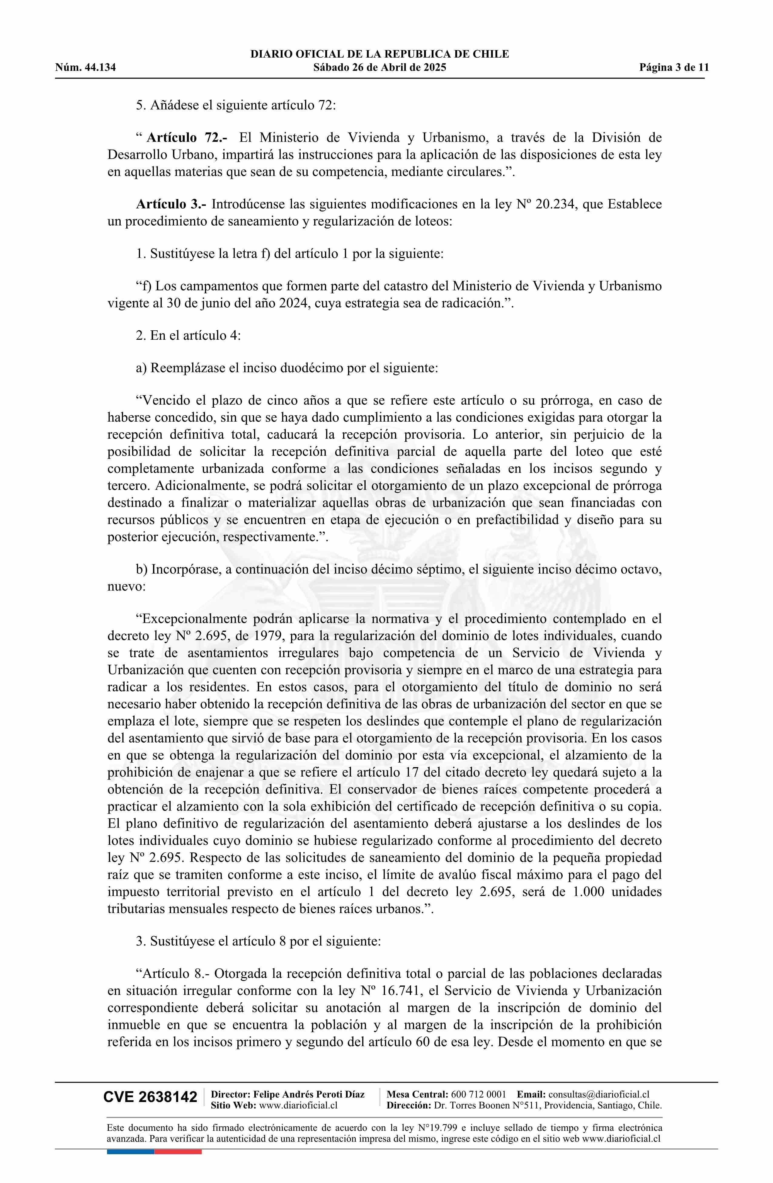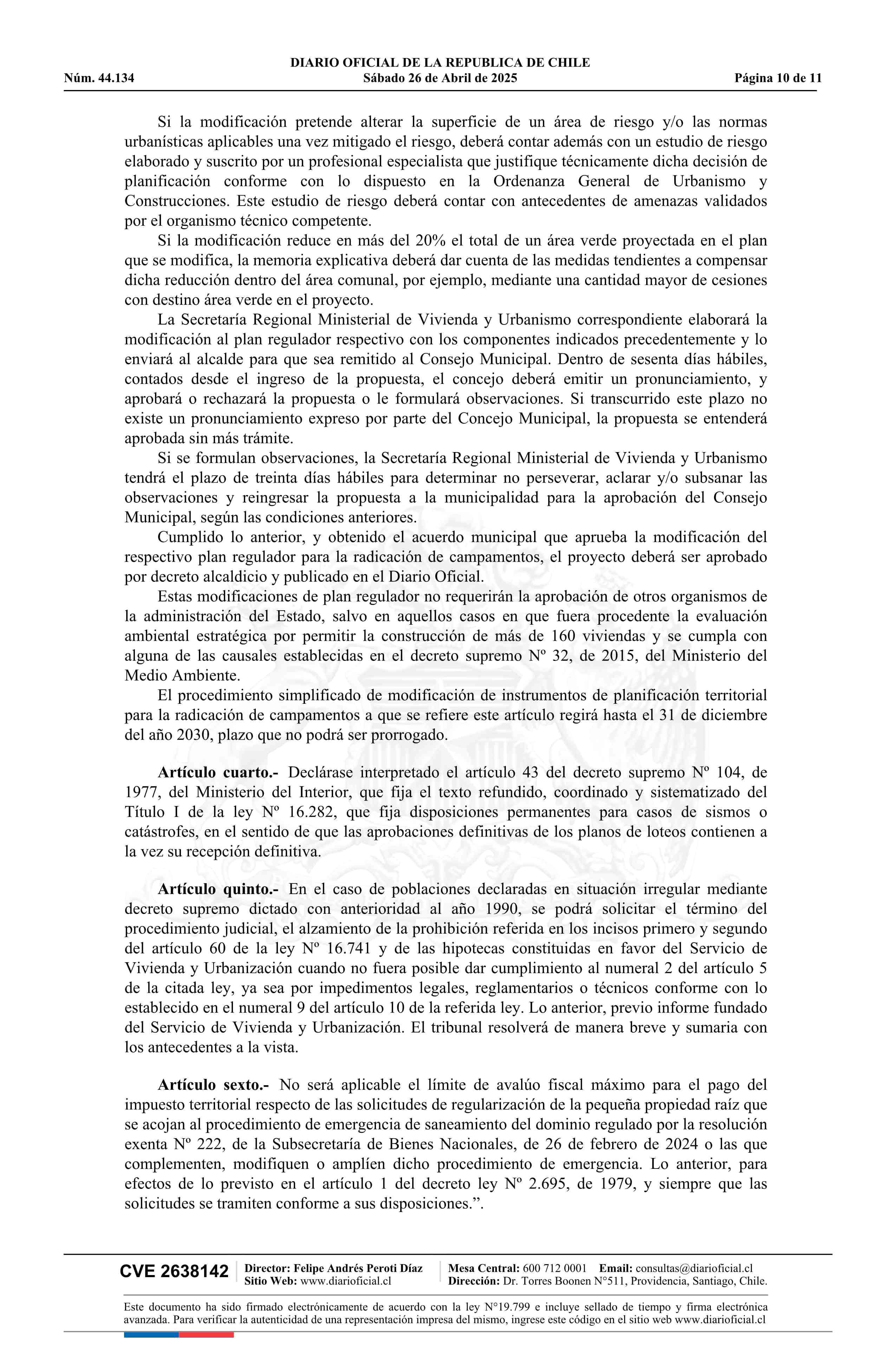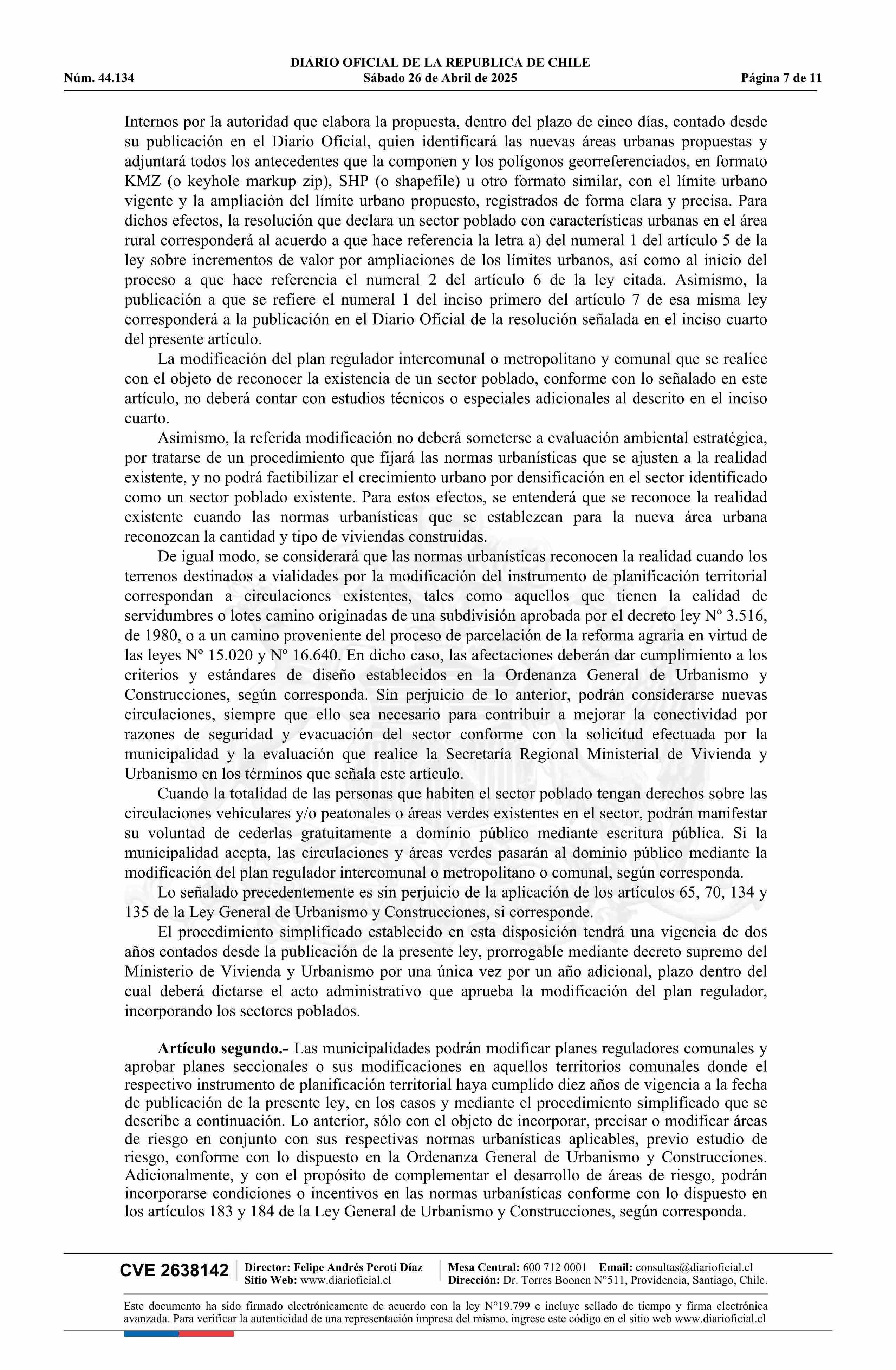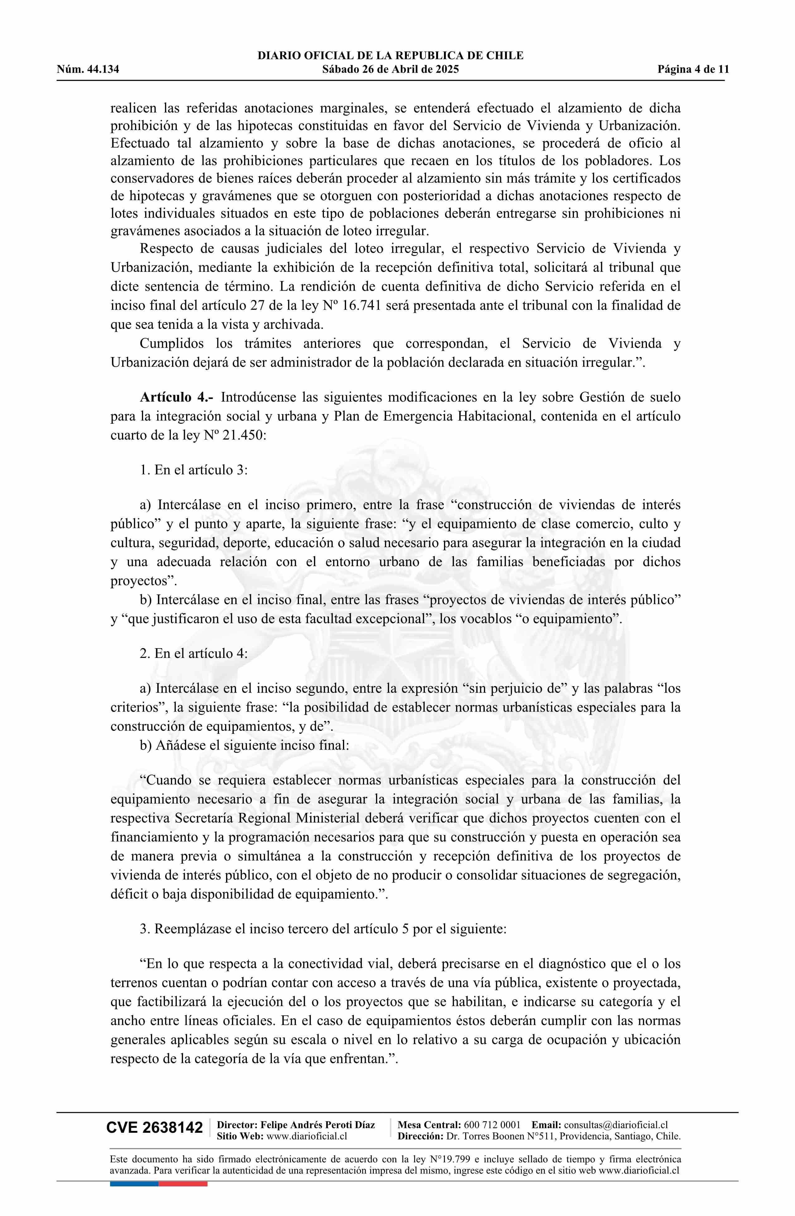 Ley número 21.741.- Modifica diversos cuerpos legales con el objeto de atender fenómenos urbanos consolidados en el territorio, urgentes, que afectan a la población 26-04-2025 DIARIO OFICIAL CHILE - BOLETÍN OFICIAL DE MINERÍA |