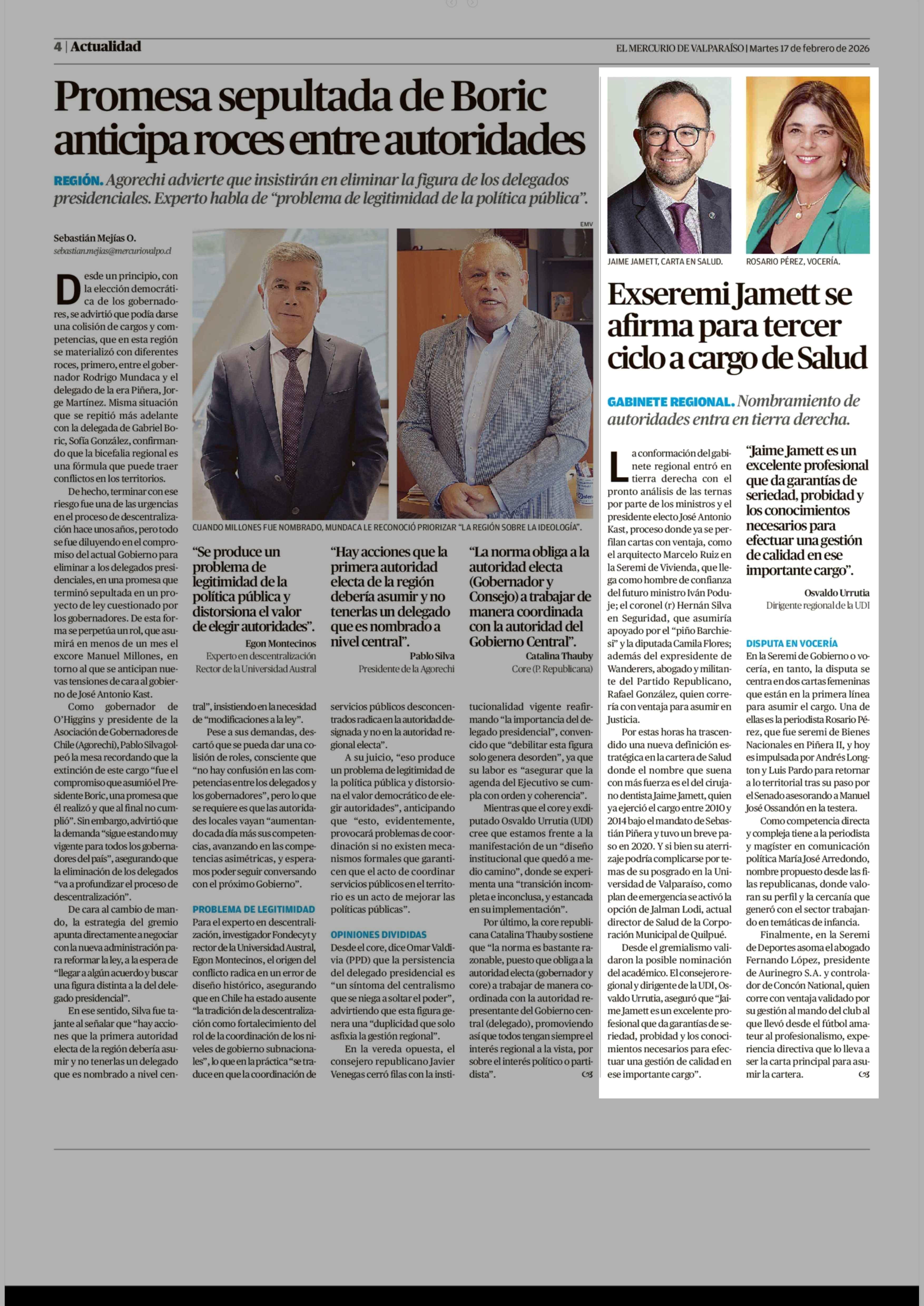 Exseremi Jamett se afirma para tercer ciclo a cargo de Salud 17-02-2026 El Mercurio de Valparaíso |