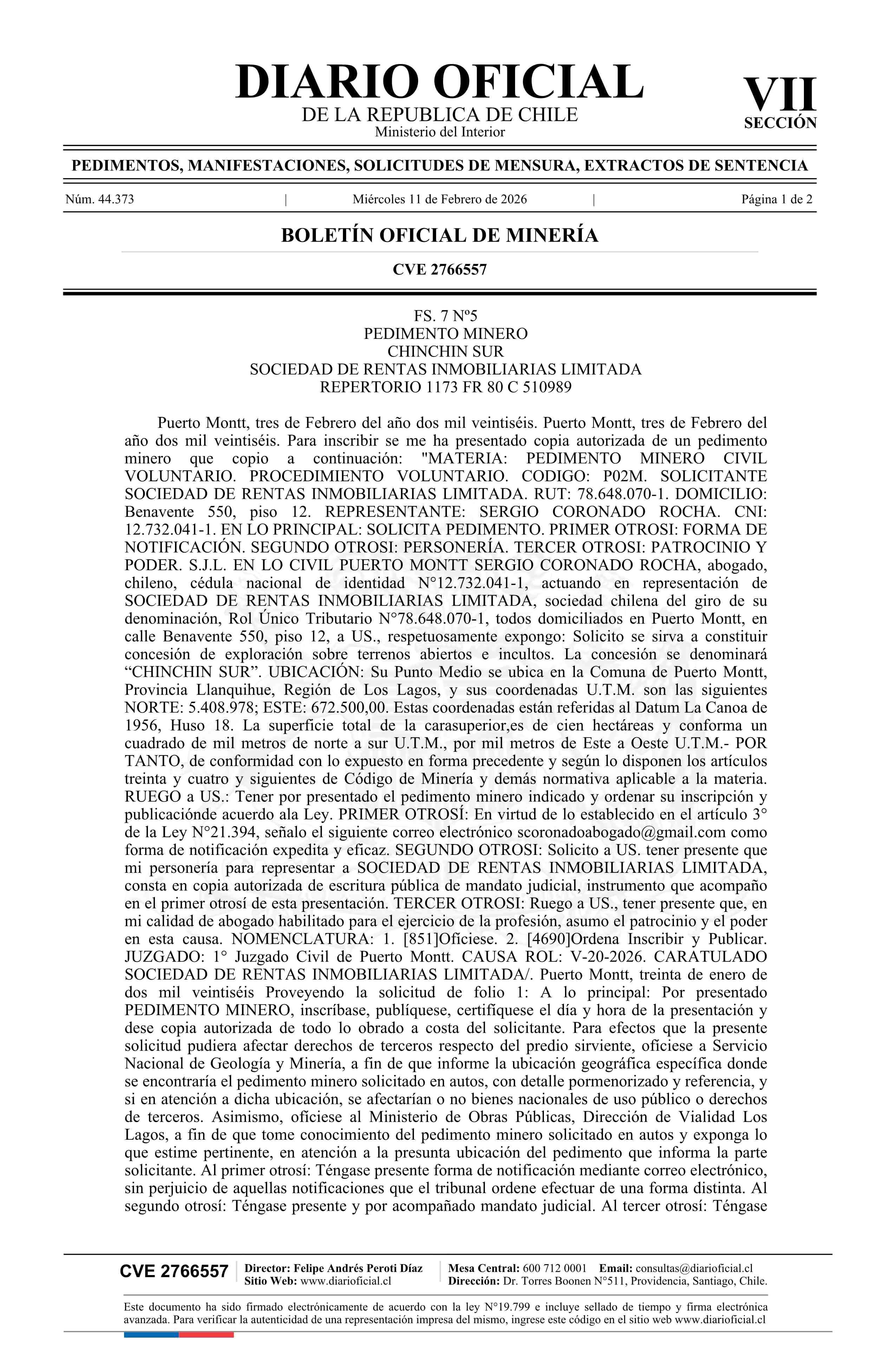 11-02-2026 DIARIO OFICIAL CHILE - BOLETÍN OFICIAL DE MINERÍA