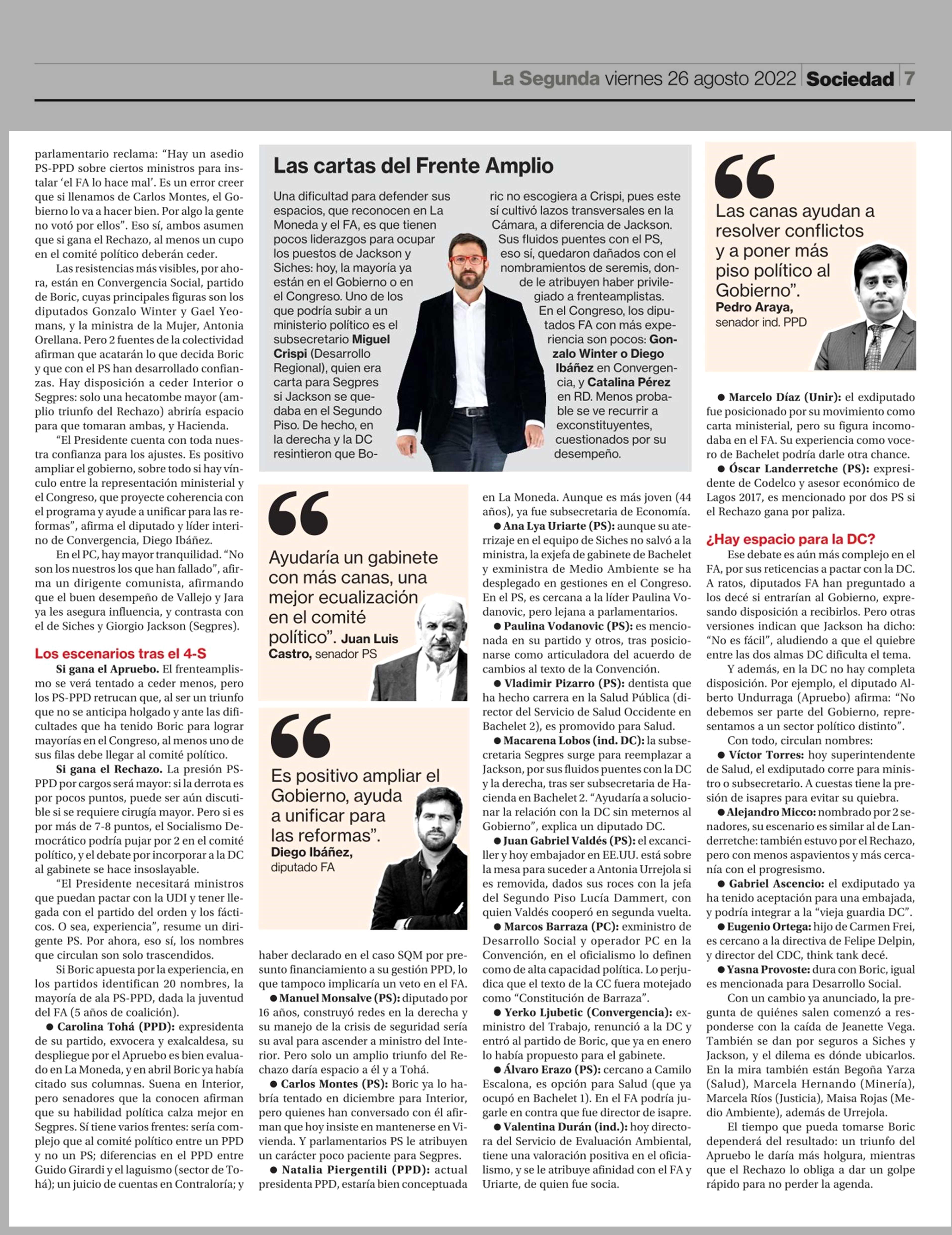 20 nombres que le darían experiencia al gabinete de Boric 26-08-2022 La Segunda |