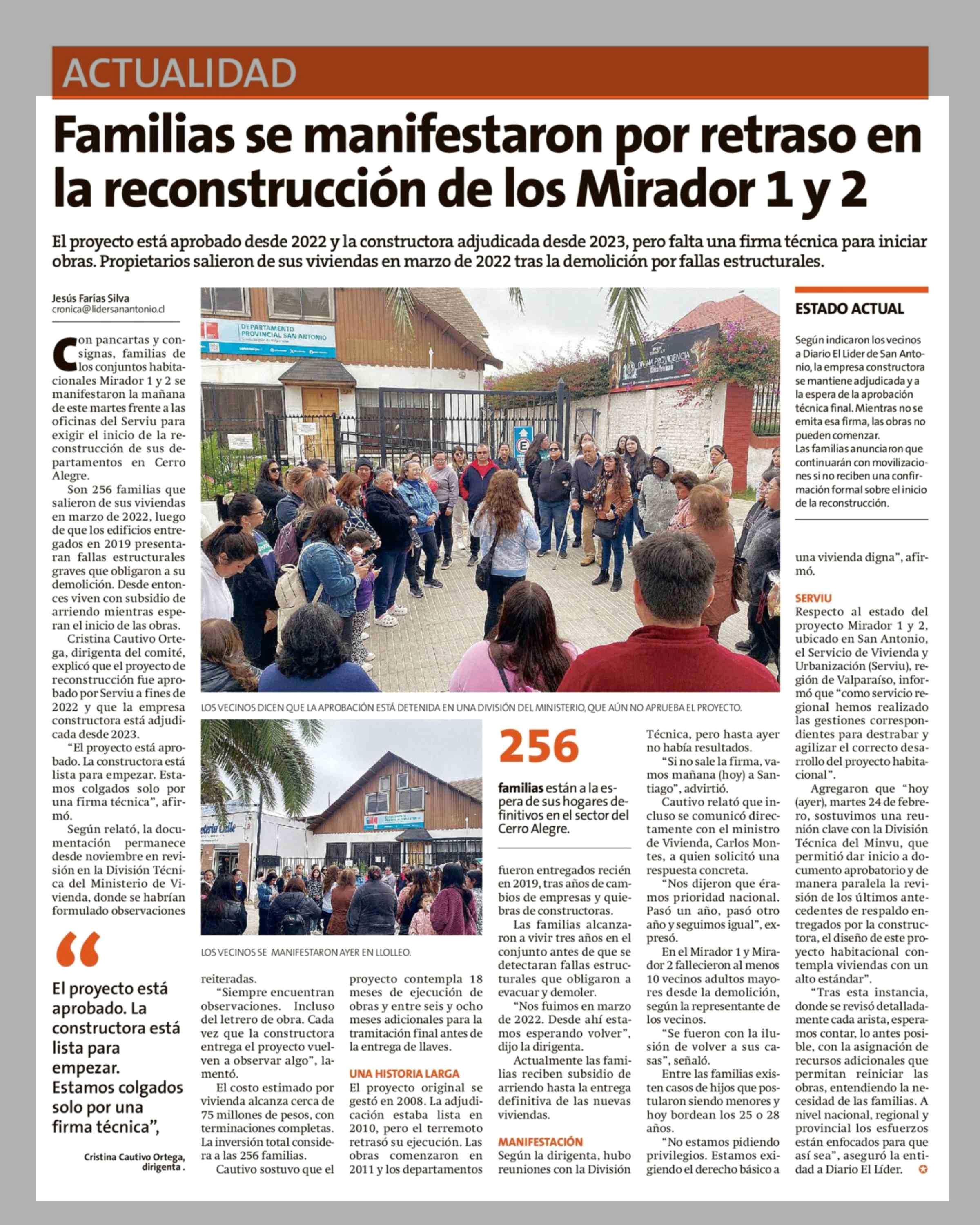 Título: Familias se manifestaron por retraso en la reconstrucción de los Mirador 1 y 2