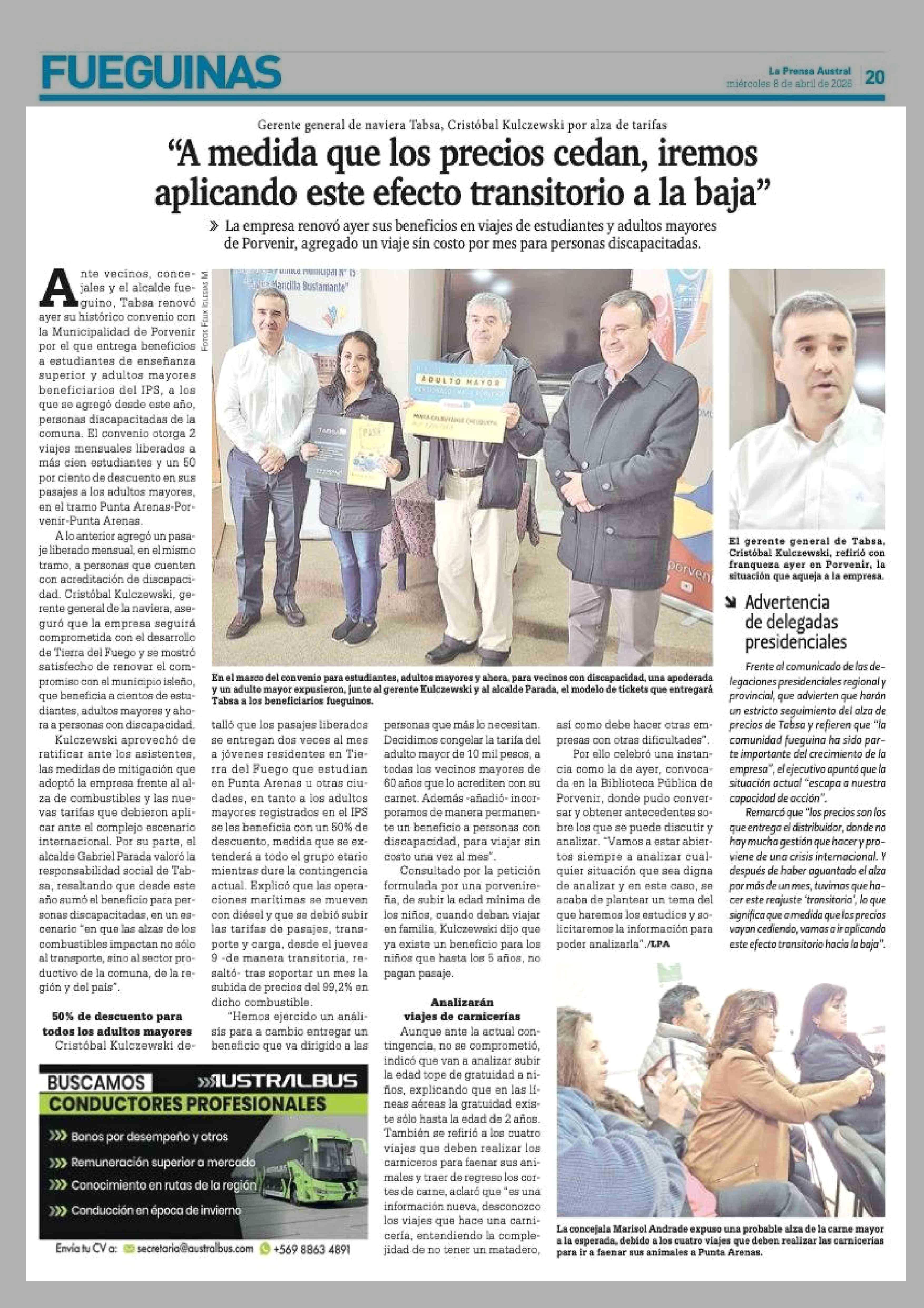 "A medida que los precios cedan, iremos aplicando este efecto transitorio a la baja" 08-04-2026 La Prensa Austral |